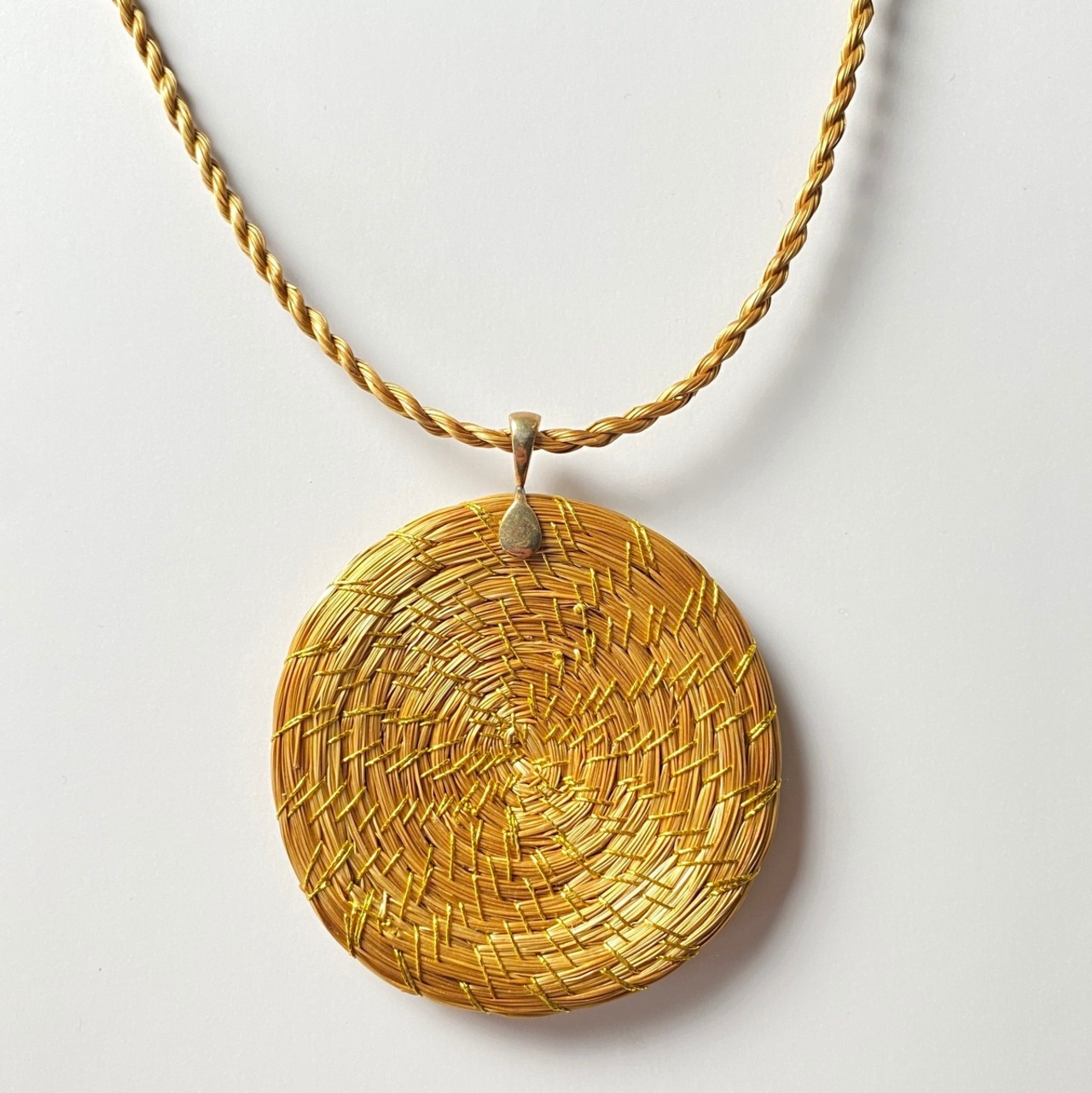 【ビオジュエリー】 黄金の草 カッピンドウラード 草紐ネックレス ラウンド 5cm