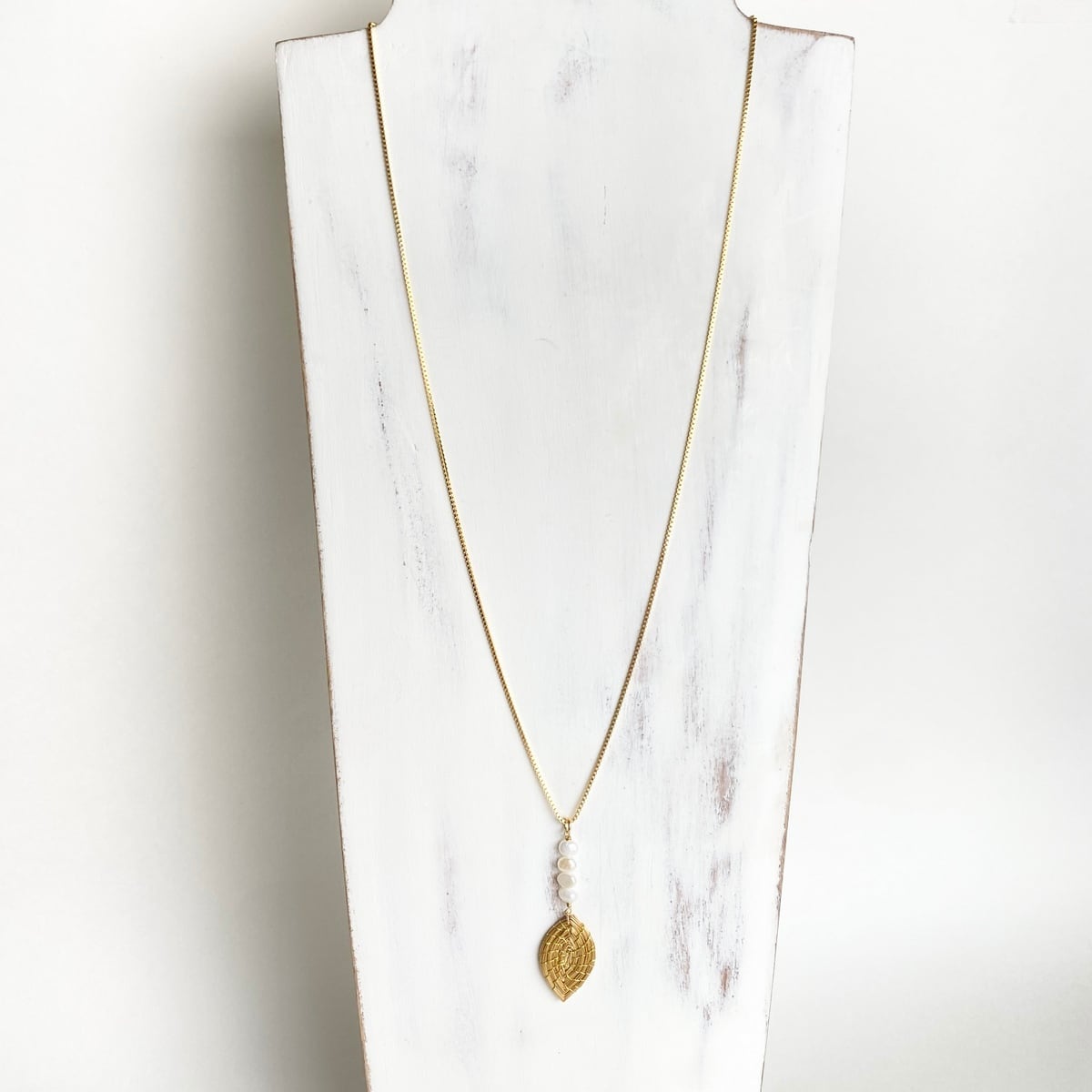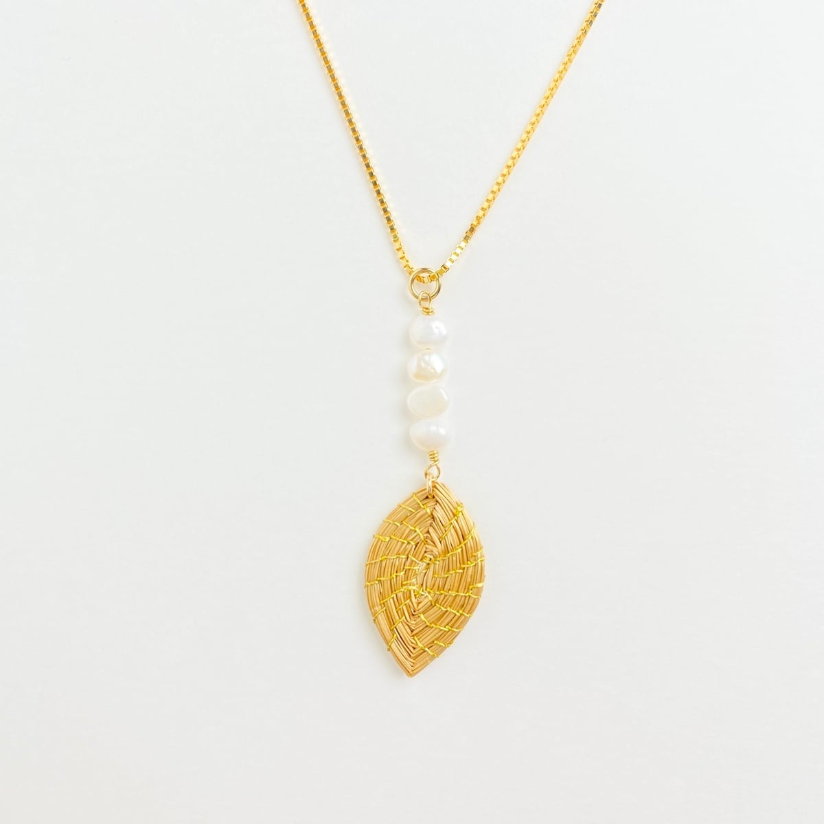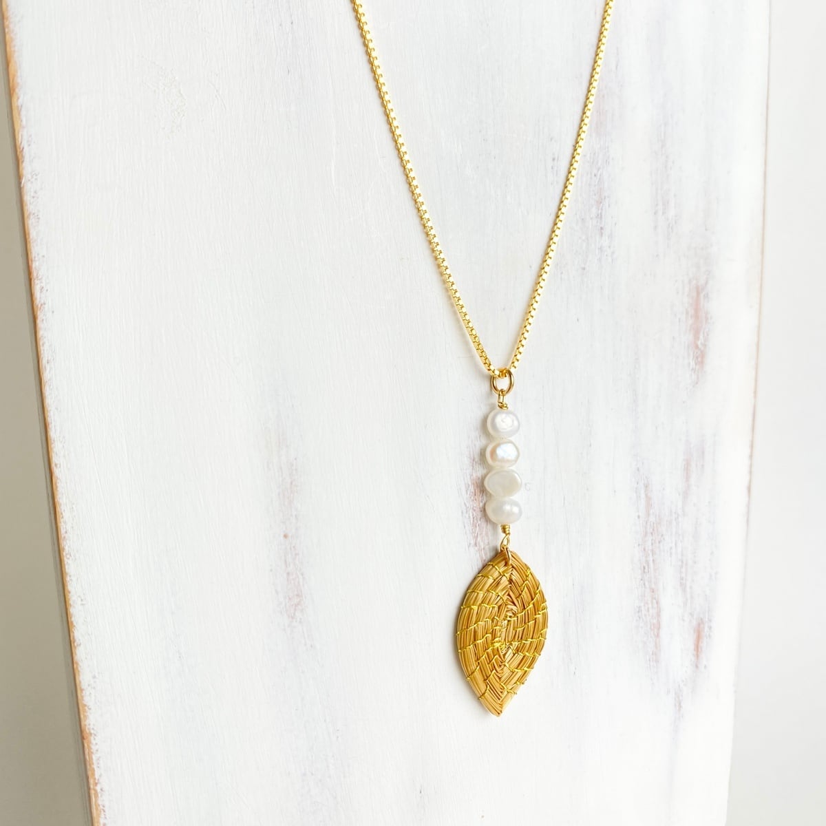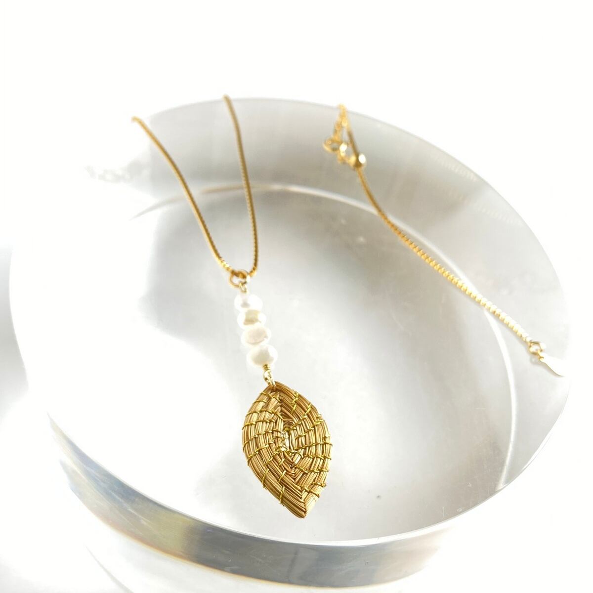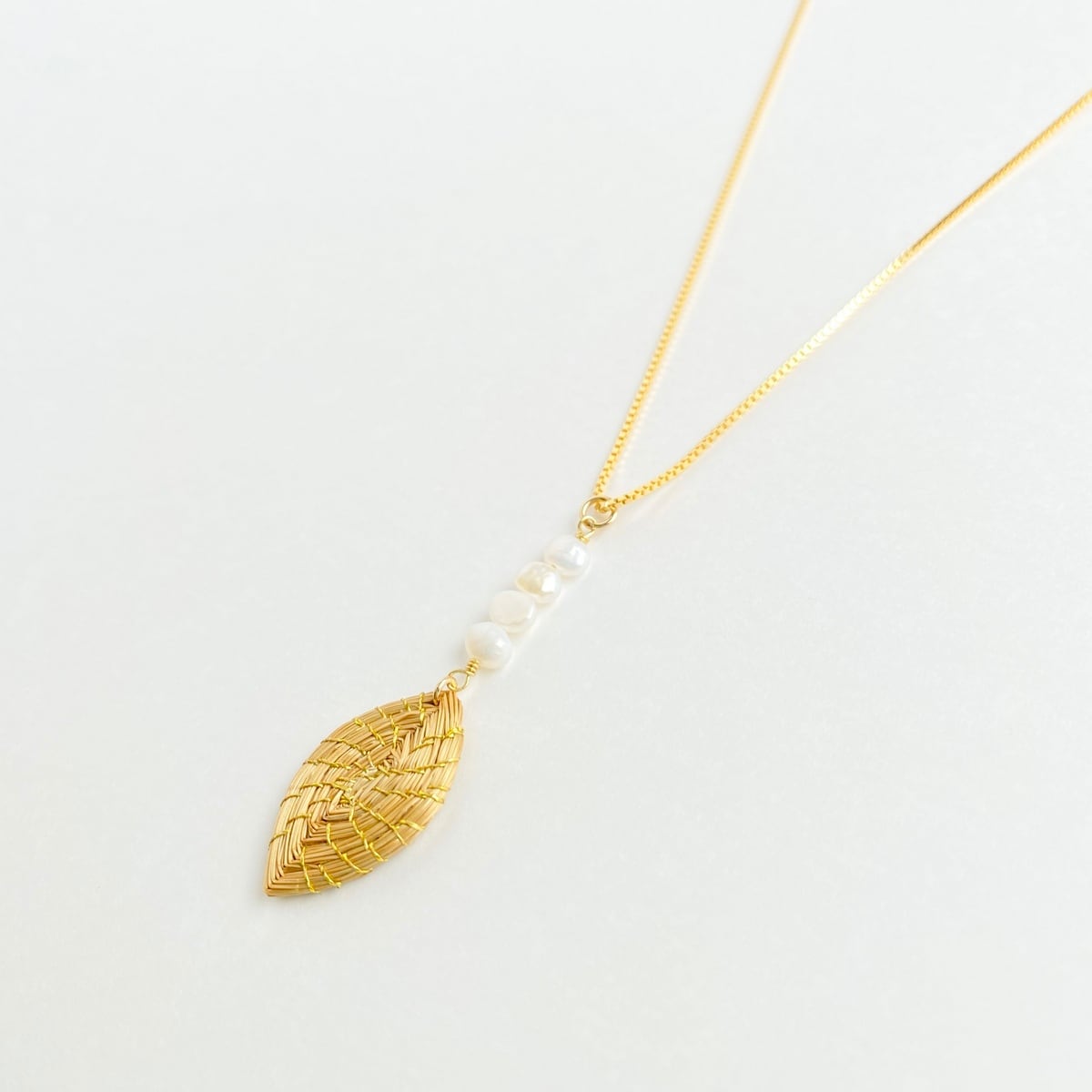 【ビオジュエリー】 黄金の草 カッピンドウラード ネックレス リーフ 淡水パール