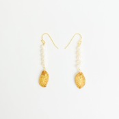 【ビオジュエリー】 黄金の草 カッピンドウラード ピアス&イヤリング ミニリーフ淡水パール5連