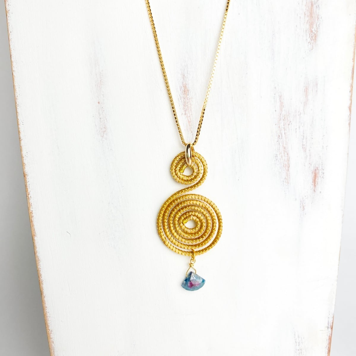 【ビオジュエリー】 黄金の草 カッピンドウラード ネックレス jaipurシリーズ ダブルスパイラル ジオサイトルビー