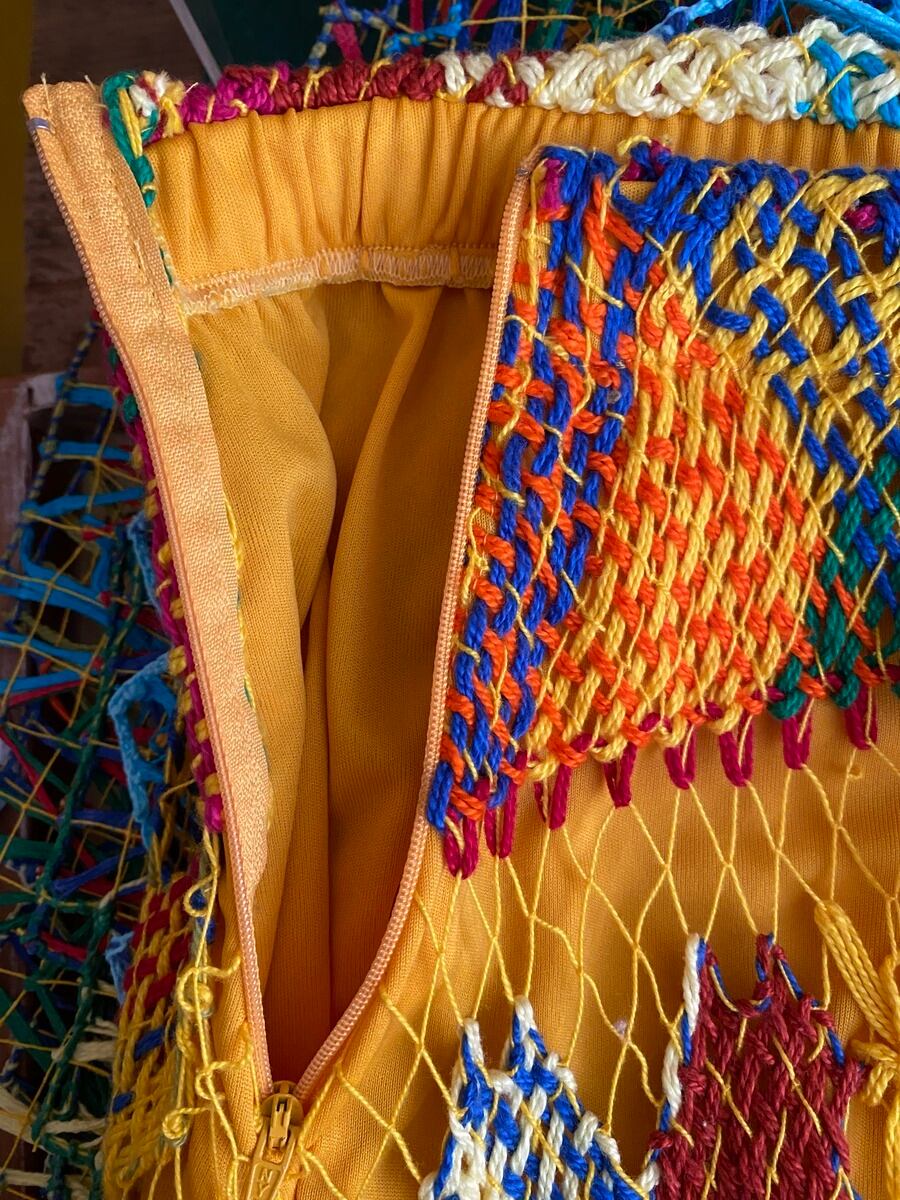 こちらはカラフルで、漁師網に刺繍をしたとも言われ、ベース部も手編みになります。