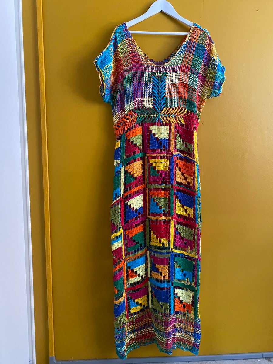 こちらはカラフルで、漁師網に刺繍をしたとも言われ、ベース部も手編みになります。