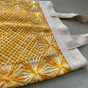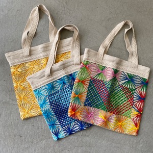 ブラジルのカラフルレースのバッグです。 ブラジルにはポルトガル、フランスからの刺繍・レースの技術が入ってきたと言われています。 こちらはカラフルで、漁師網に刺繍をしたとも言われ、ベース部も手編みになります。 一点物で、作品性高いブラジルレースをお楽しみいただけます。 3色ご用意がございます♪ レース:コットン100% 本体部:コットン100% サイズ :横42cm、縦37cm 、持ち手32cm(外寸)