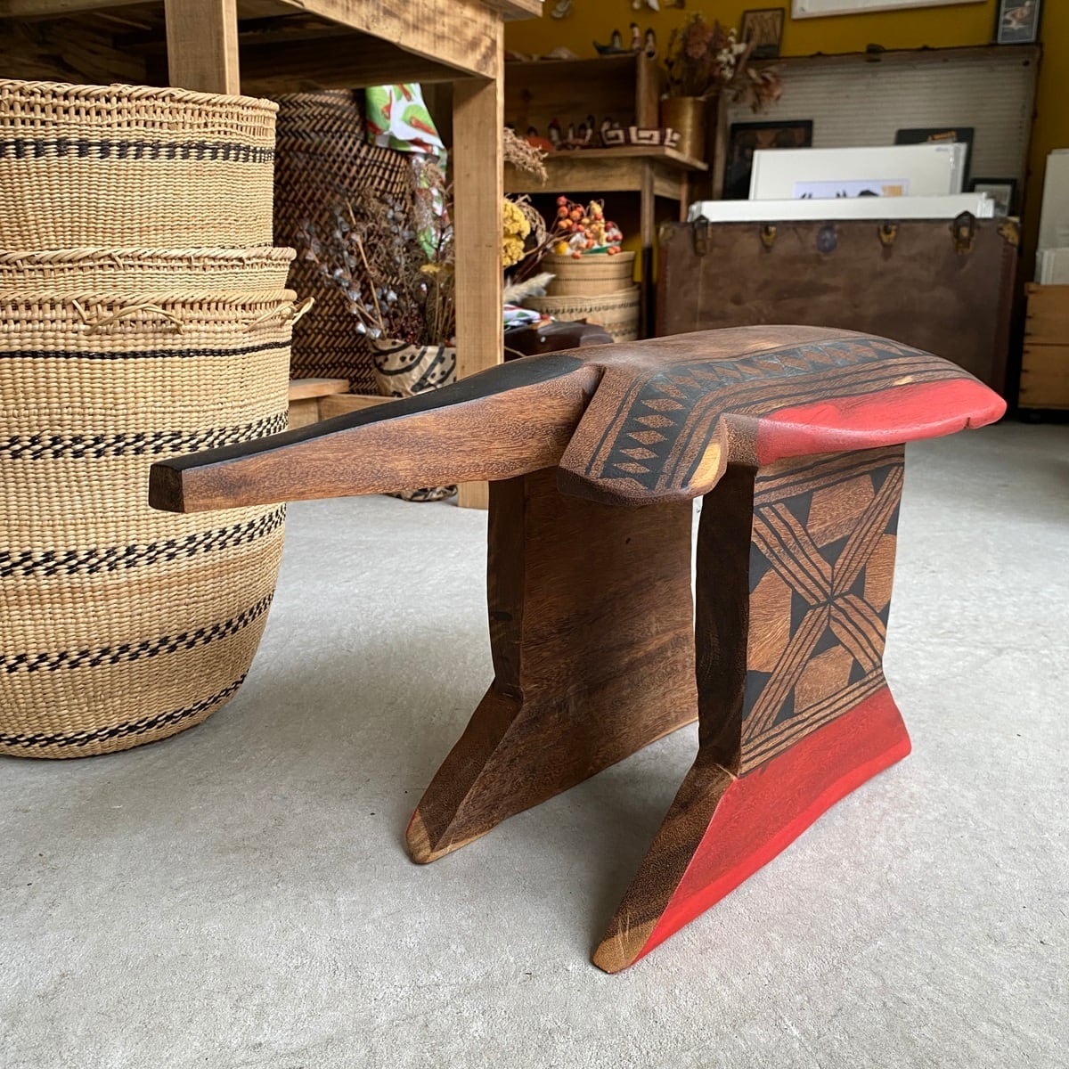 2018年に東京都庭園美術館で開催された、「ブラジル先住民族の椅子 野生動物と想像力」で初めて日本で紹介された、南米大陸、ブラジル北部のアマゾン河やシングー川流域で暮らす先住民族、メイナク族の一木造りの椅子。