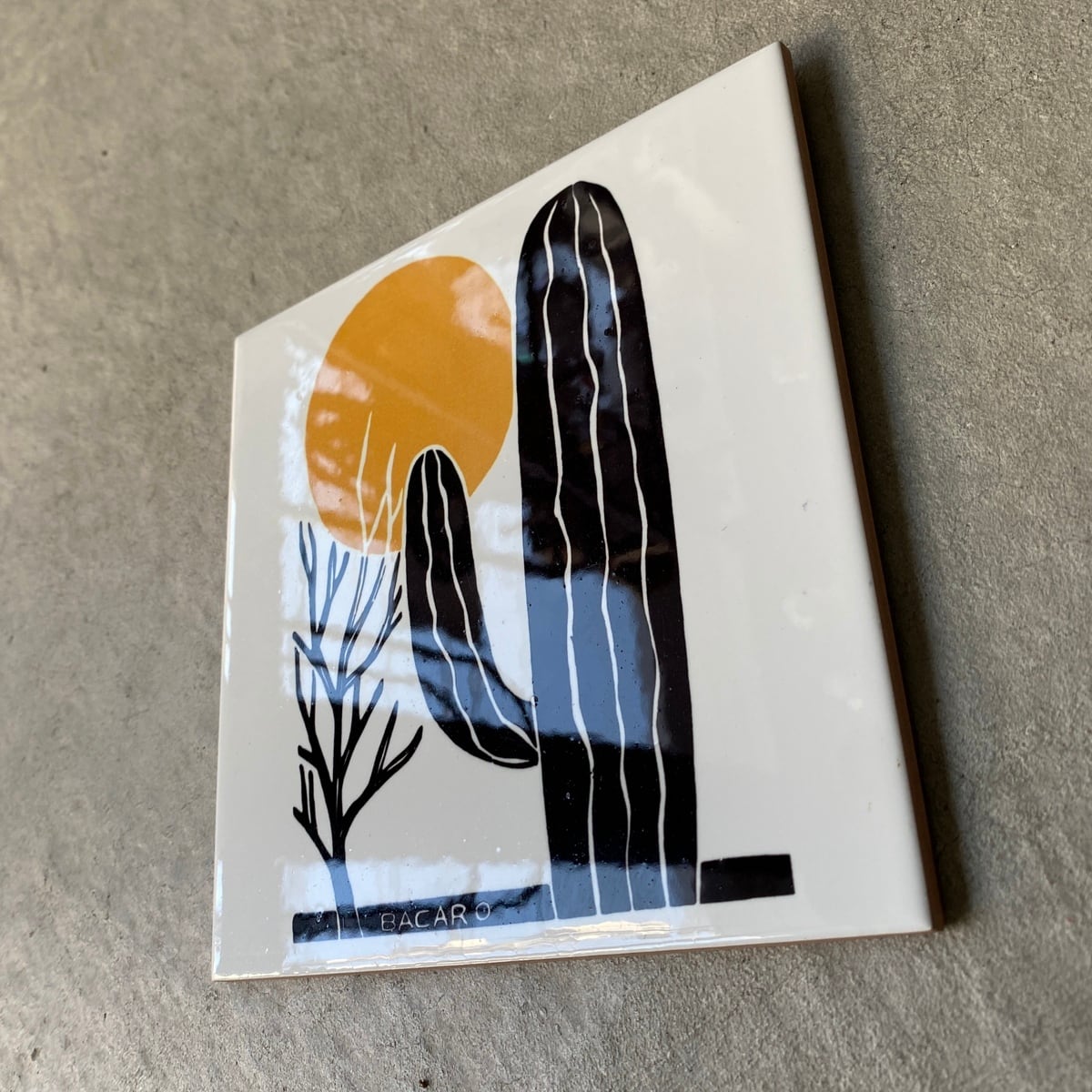 ボルジェス木版画 BACARO BORGES タイル『サボテンと木と太陽』