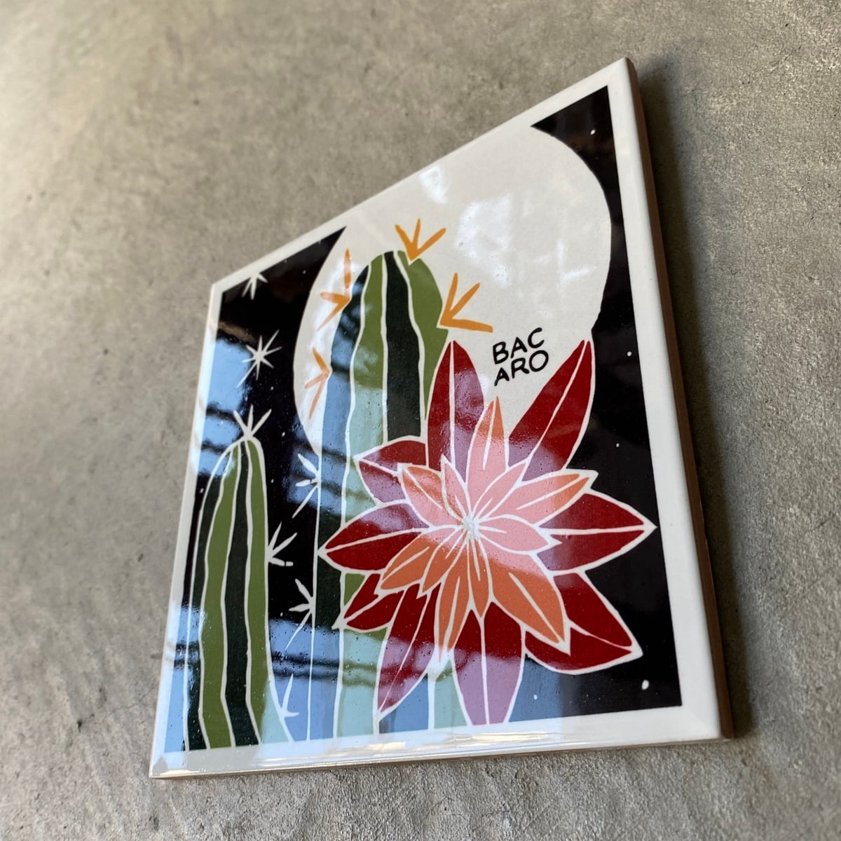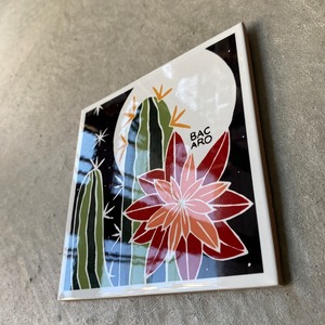 ボルジェス木版画 BACARO BORGES タイル『サボテンの花』