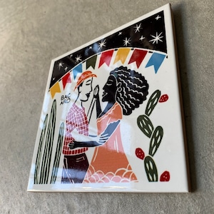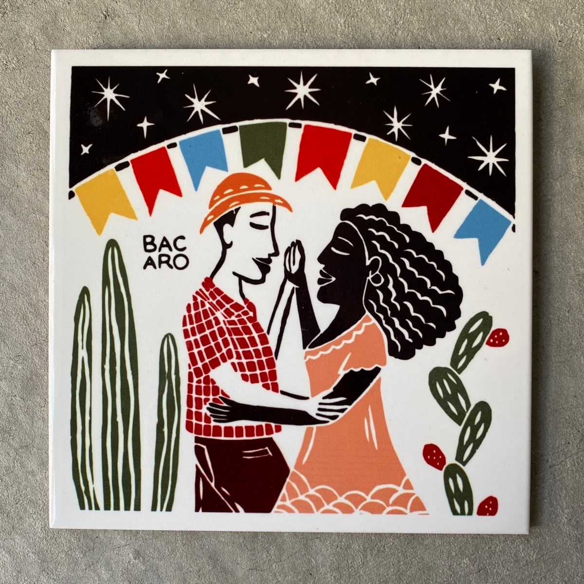 ボルジェス木版画 BACARO BORGES タイル『踊る男女』