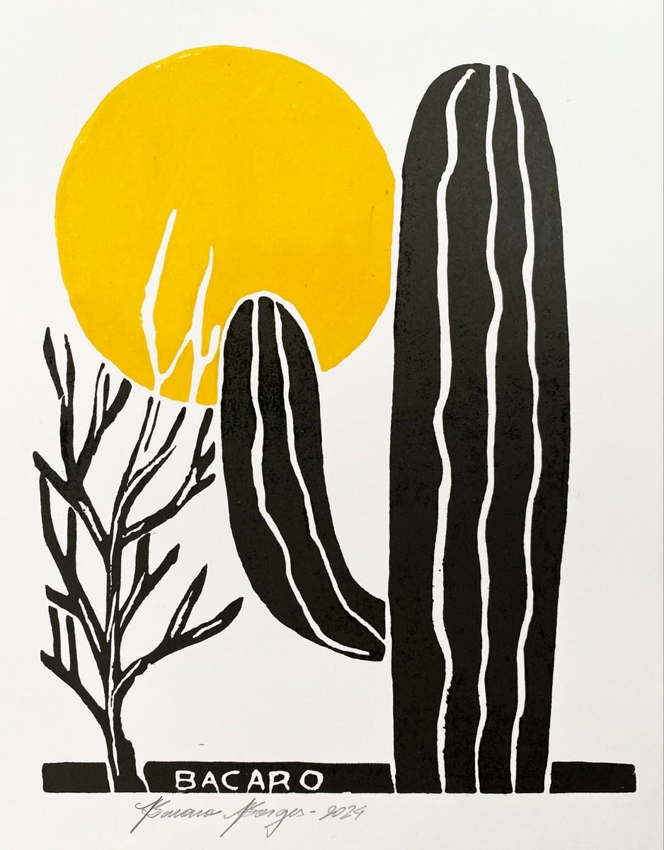 BACARO BORGES バカロ・ボルジェス 木版画 S【黄色い太陽とサボテンと木】