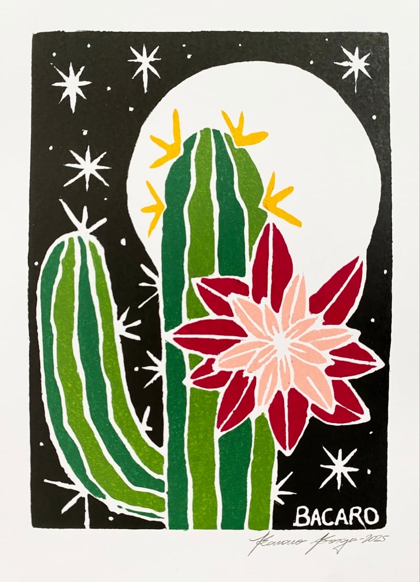 BACARO BORGES バカロ・ボルジェス 木版画 S【夜のサボテンの花】