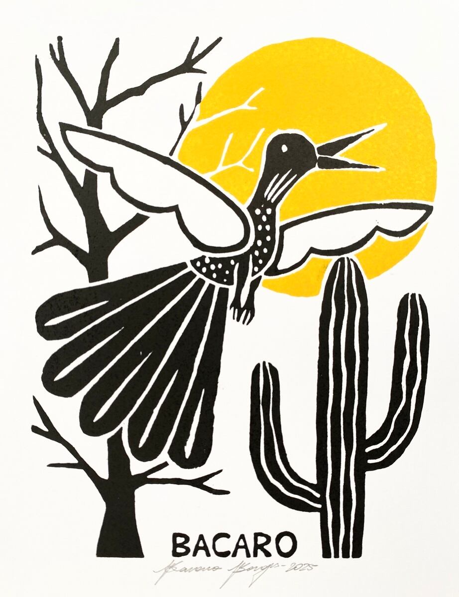 BACARO BORGES バカロ・ボルジェス 木版画 S【アザブランカとサボテンと木】