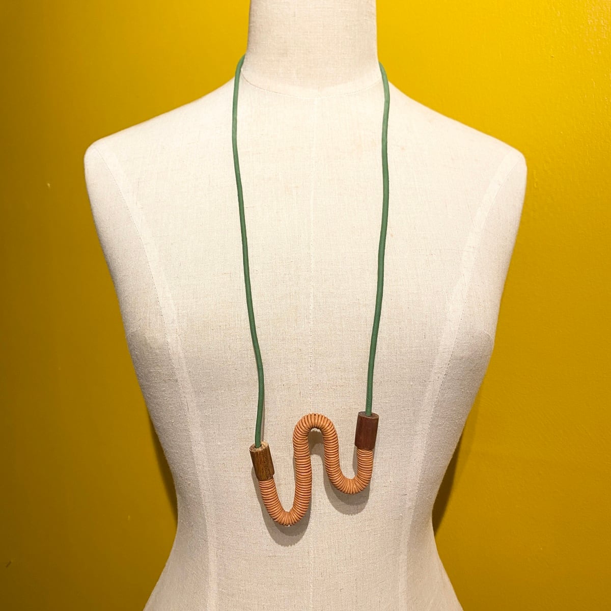 【 DaTribu ダ・トリブ 】ブラジル先住民族 天然ゴムネックレス Onda グリーン&ベージュ