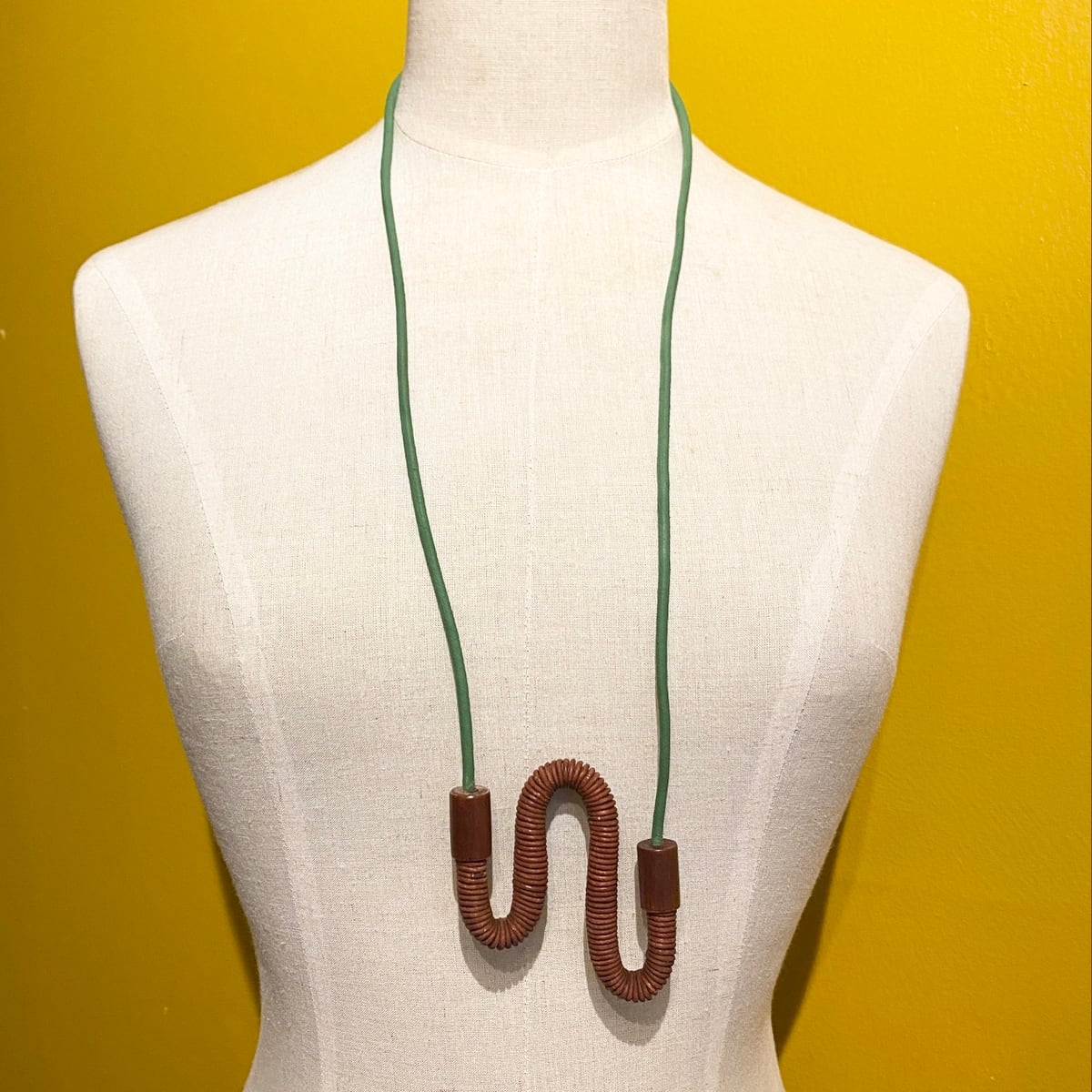 【 DaTribu ダ・トリブ 】ブラジル先住民族 天然ゴムネックレス Onda グリーン&ブラウン