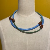 【 DaTribu ダ・トリブ 】ブラジル・アマゾン 天然ゴムネックレス Trilha Dourada <M>スカイブルー&グリーン