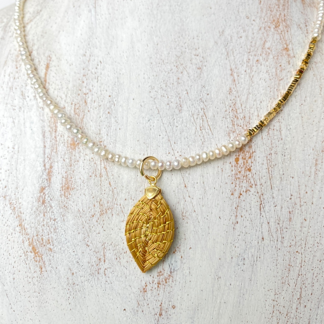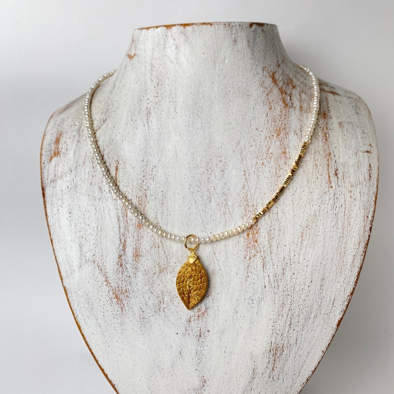 【ビオジュエリー】 黄金の草 カッピンドウラード 淡水パール ネックレス リーフ