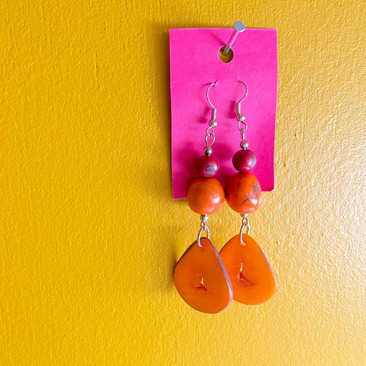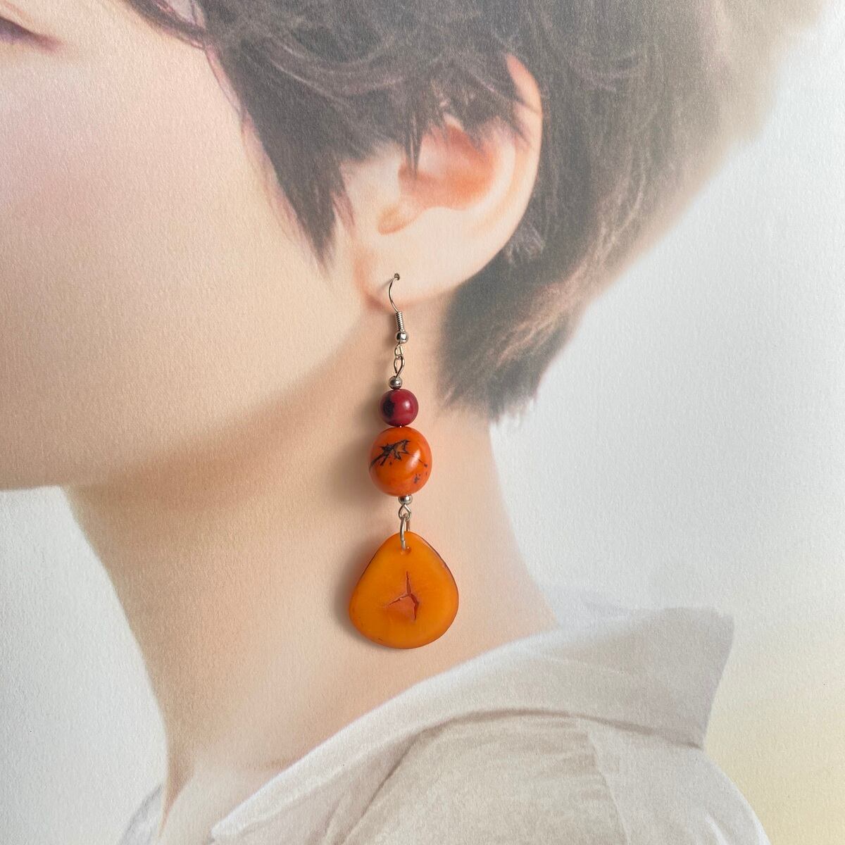 ヤシの実(アサイー、ジャリーナ、パシウバオ)を使ったピアスです。