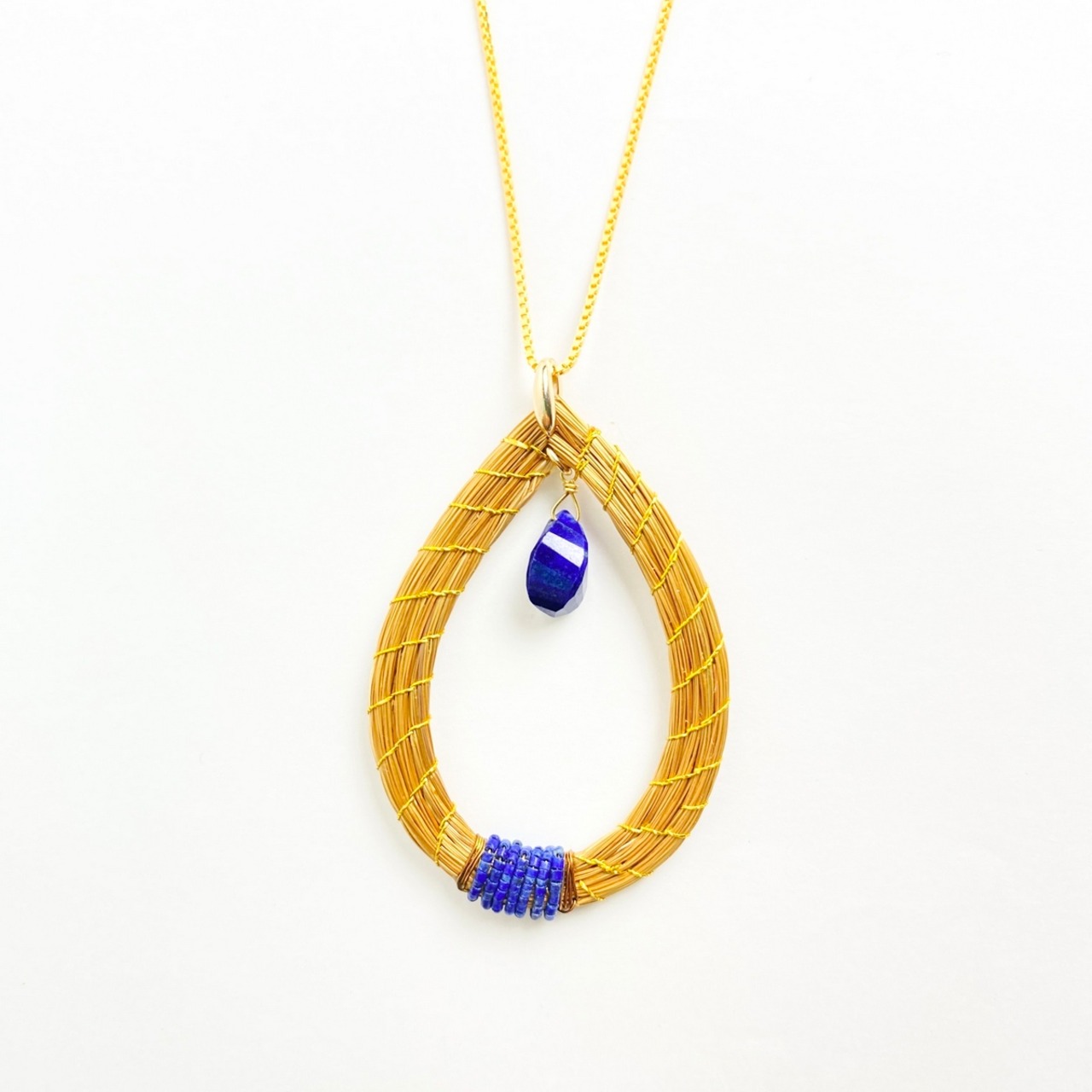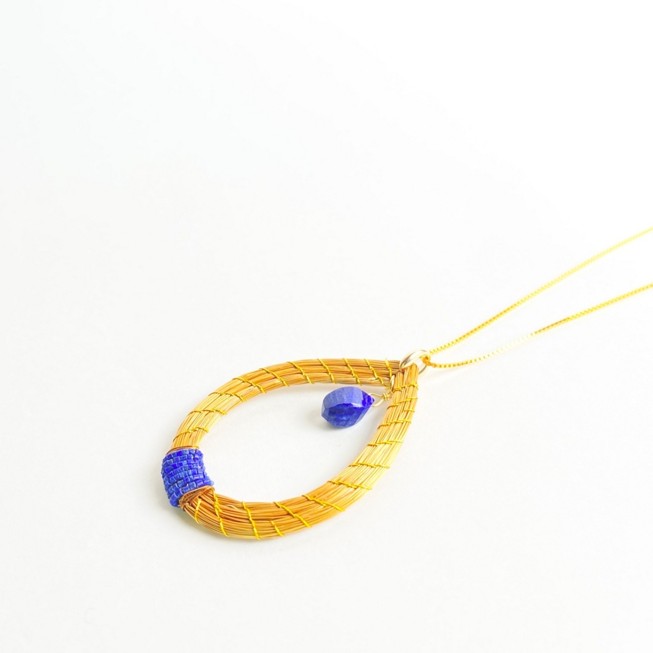 【ビオジュエリー】 黄金の草 カッピンドウラード チェーンネックレス ラピスラズリ ティアドロップ