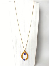 ティアドロップのモチーフの中と縁に2種類のラピスラズリが光るデザインネックレス。