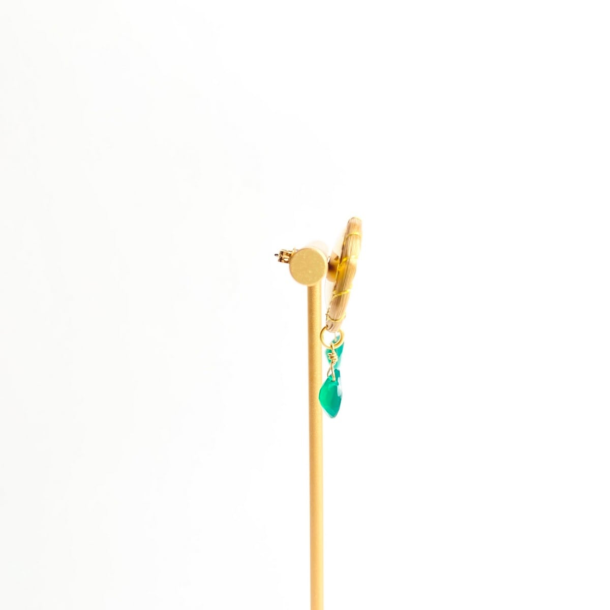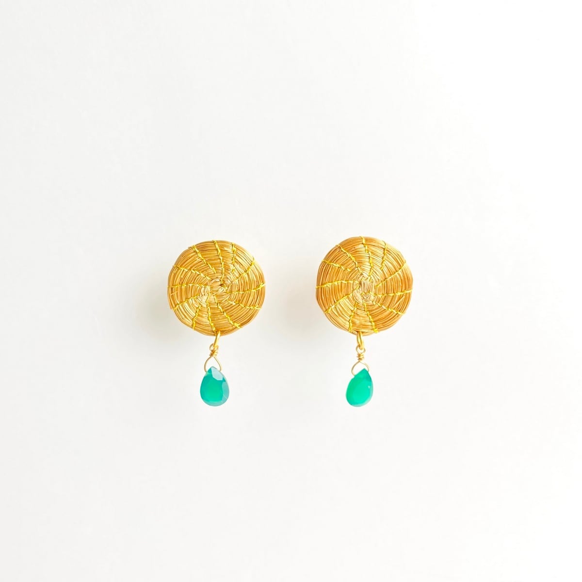 【ビオジュエリー】 黄金の草 カッピンドウラード ピアス&イヤリング ラウンド直結 グリーンオニキス