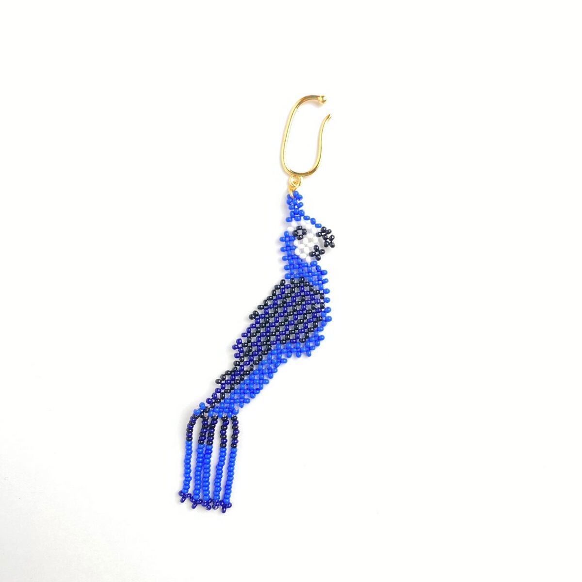 ブラジル先住民族 インコ ビーズ イヤーカフ 片耳のみ ブルー