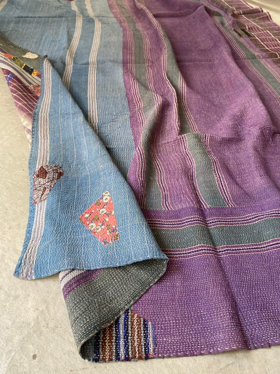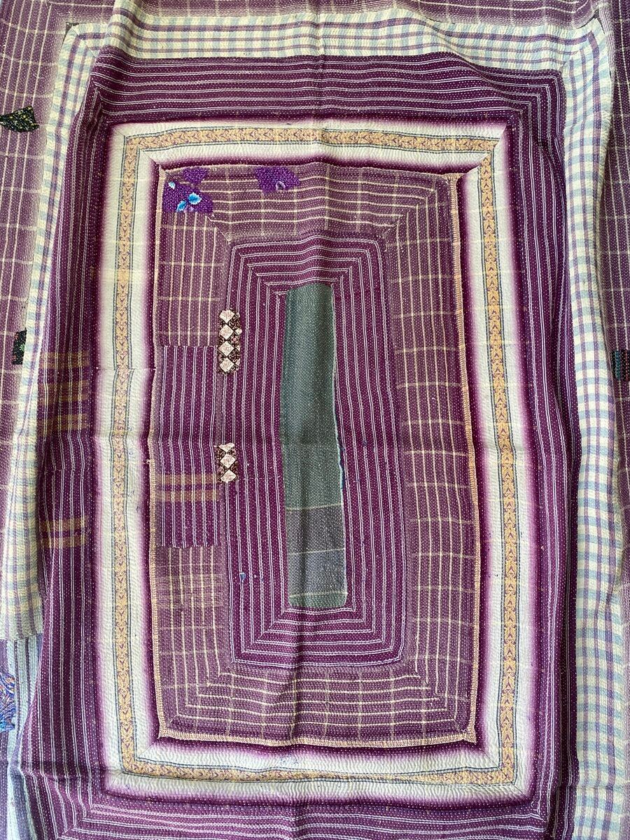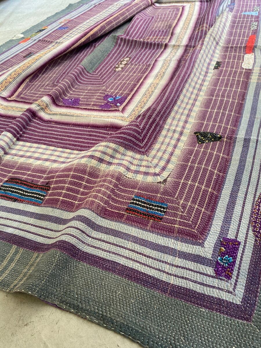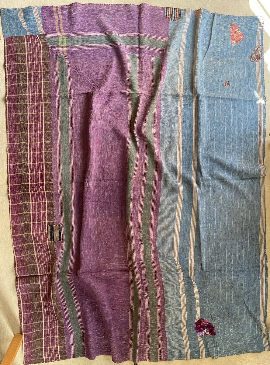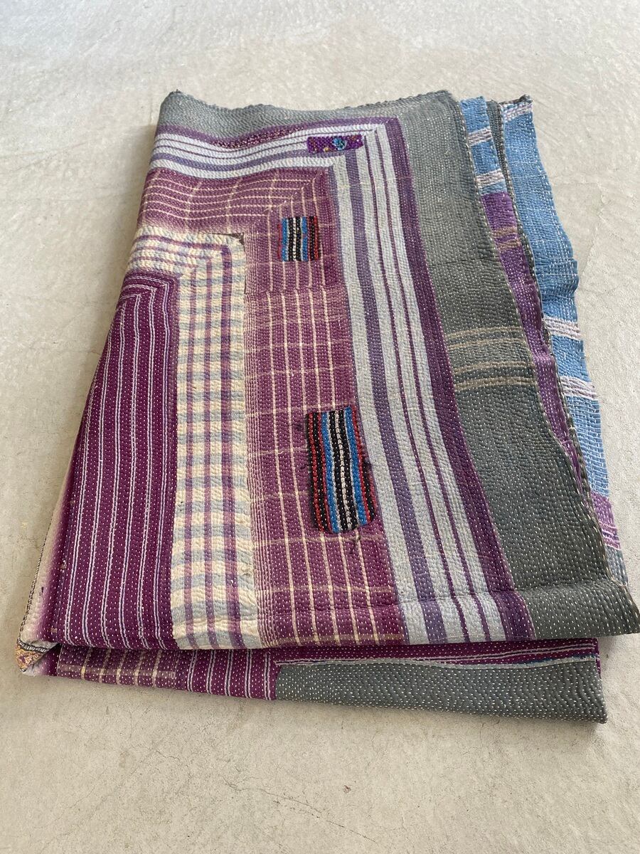 インドの手仕事カンタ刺繍は表と裏に個性的なヴィンテージ生地を合わせながら、ひと針ひと針刺し子で仕上げていきます。味のある素朴で優しい風合いで全てのデザインが一点ものです。