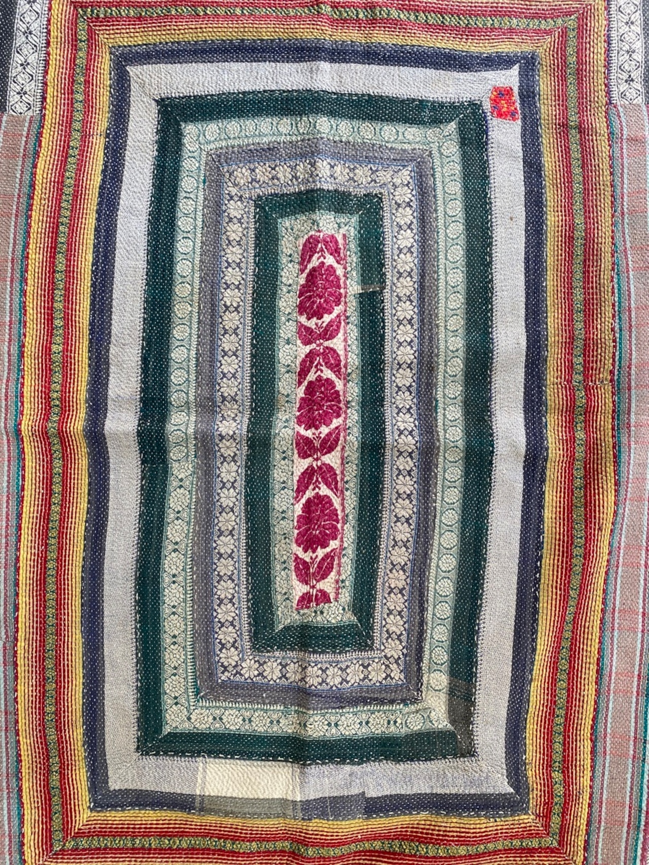 インドの手仕事カンタ刺繍は表と裏に個性的なヴィンテージ生地を合わせながら、ひと針ひと針刺し子で仕上げていきます。味のある素朴で優しい風合いで全てのデザインが一点ものです。