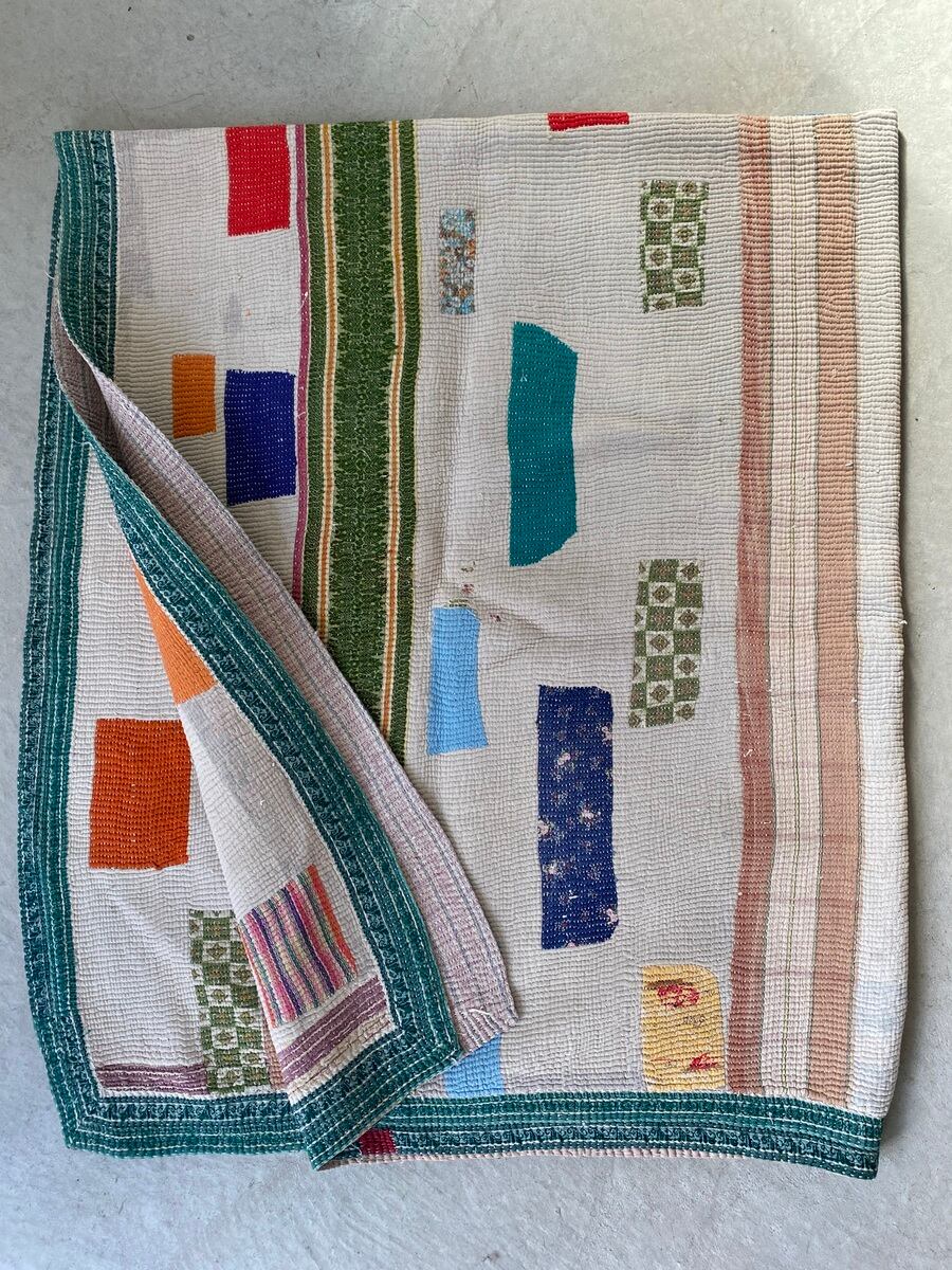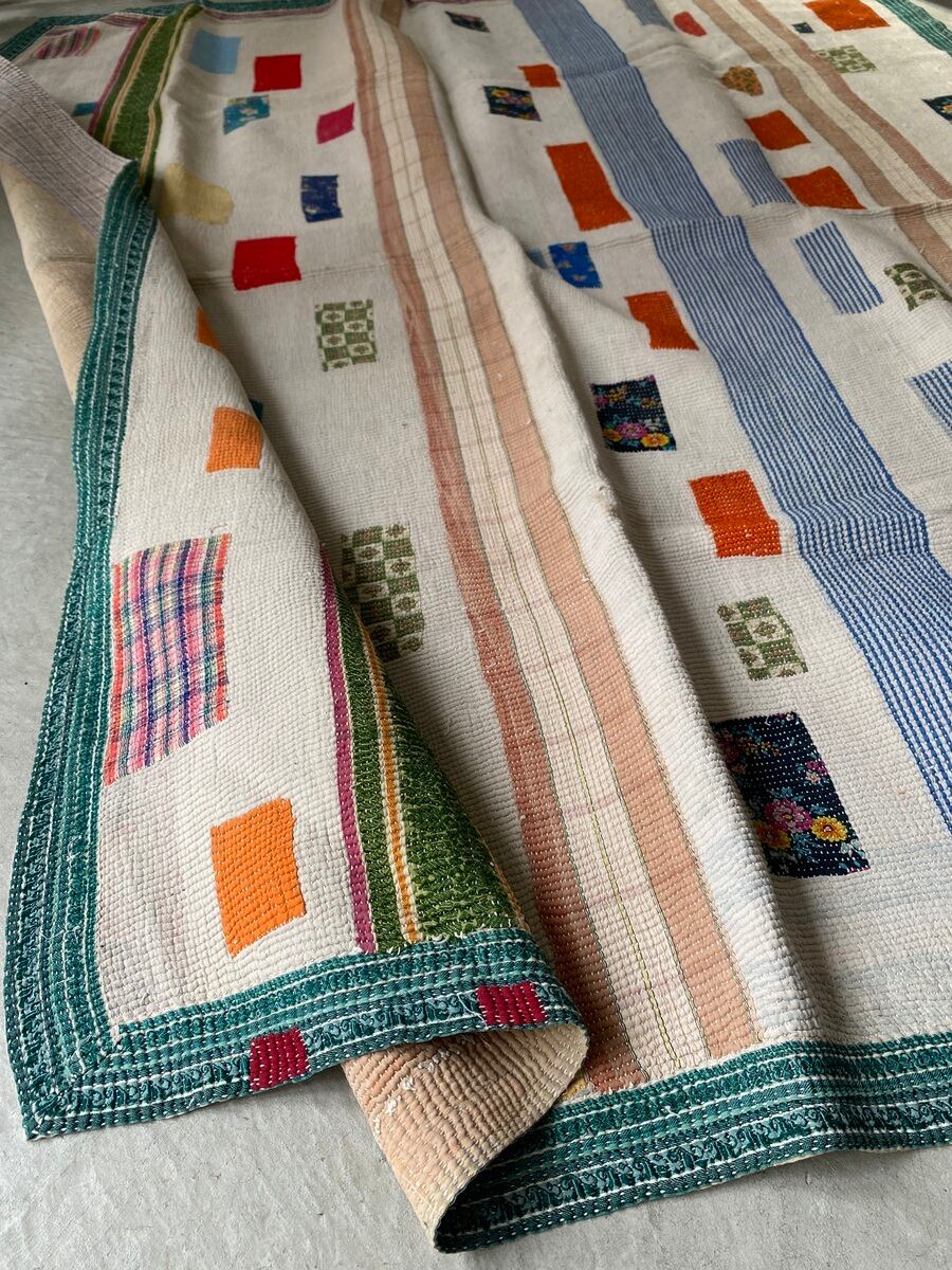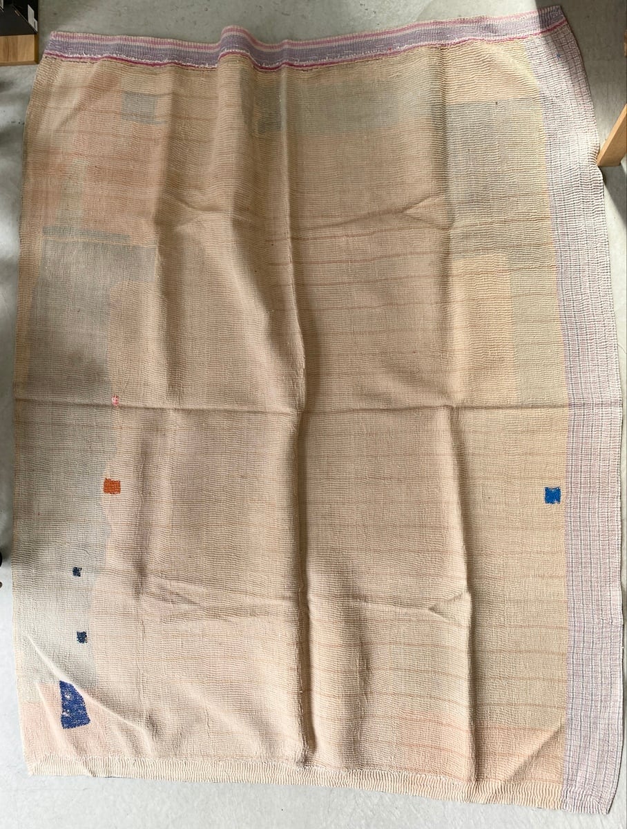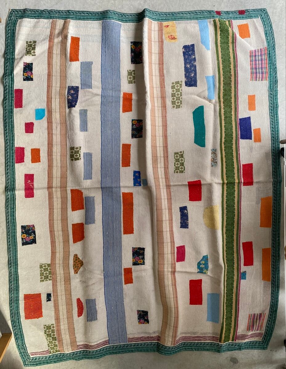 インドの手仕事カンタ刺繍は表と裏に個性的なヴィンテージ生地を合わせながら、ひと針ひと針刺し子で仕上げていきます。味のある素朴で優しい風合いで全てのデザインが一点ものです。