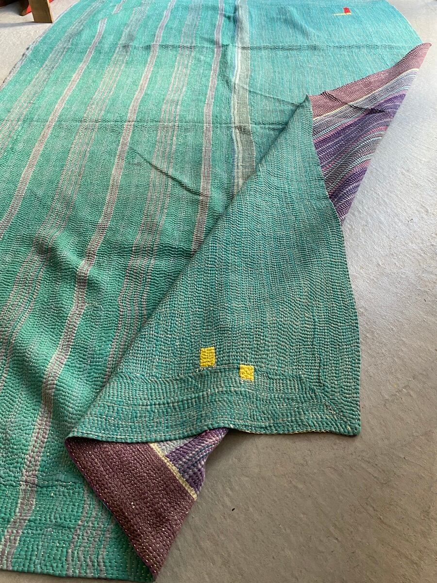 これらのカンタラグは、コットンのサリーをベースに、職人それぞれの感性で刺し子を施した リバーシブル仕様。温かみのある手縫いの風合いと、しなやかな生地感が魅力です。