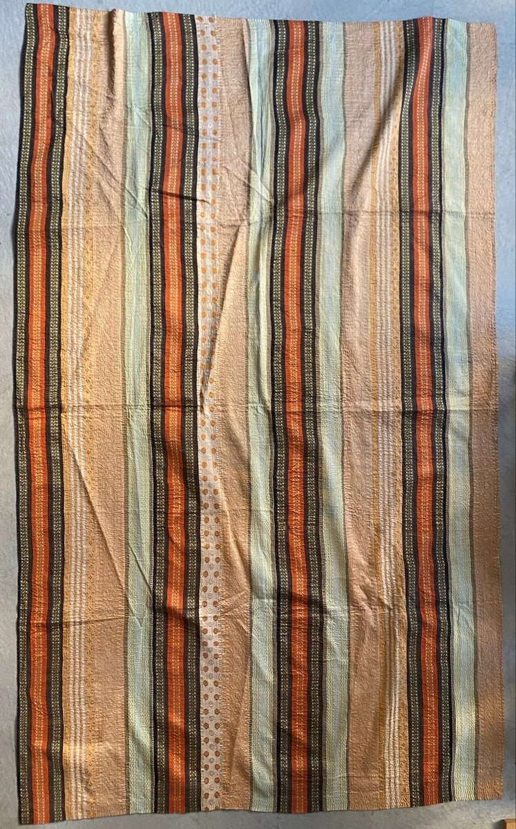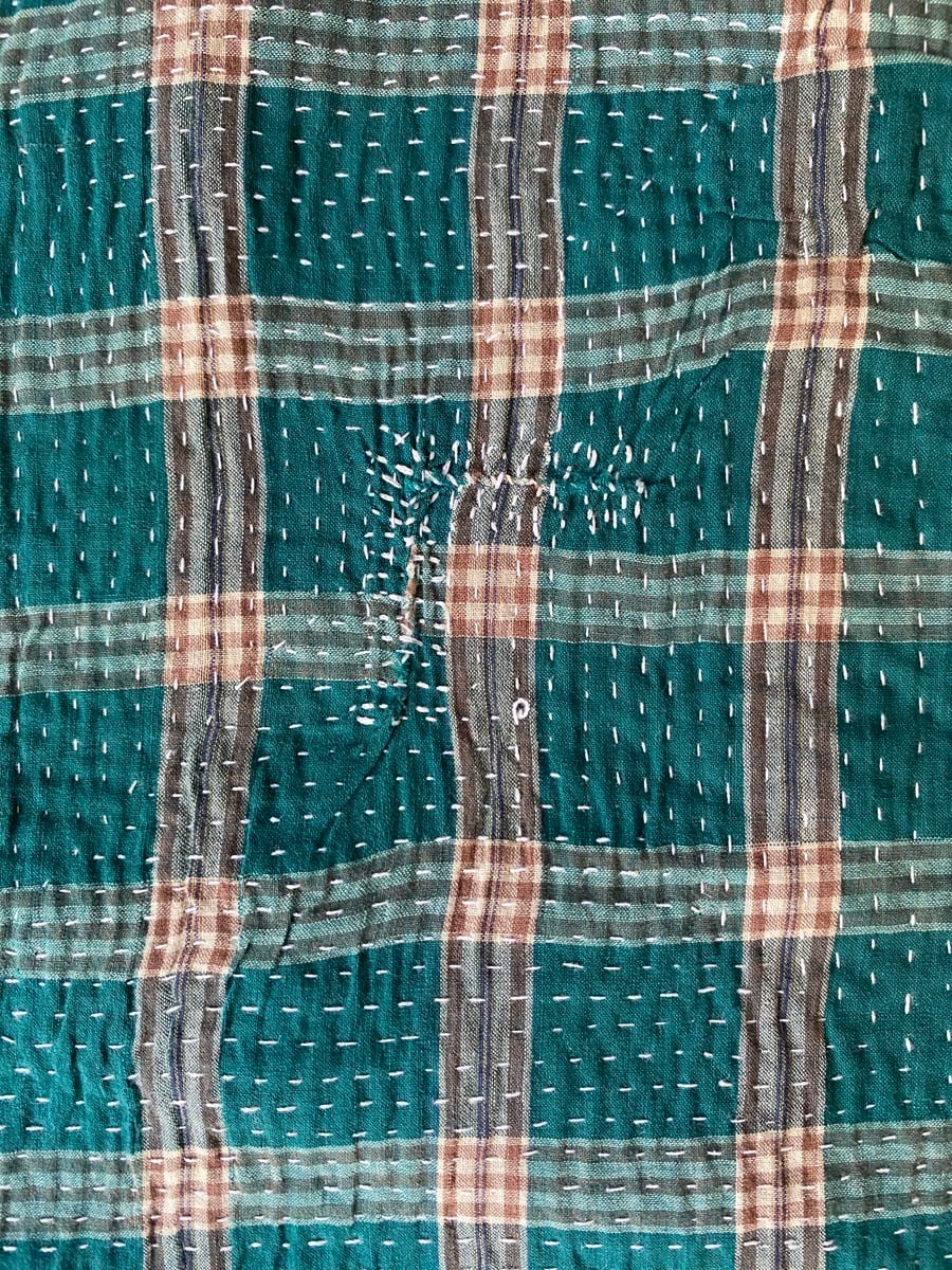 インドの手仕事カンタ刺繍は表と裏に個性的なヴィンテージ生地を合わせながら、ひと針ひと針刺し子で仕上げていきます。味のある素朴で優しい風合いで全てのデザインが一点ものです。