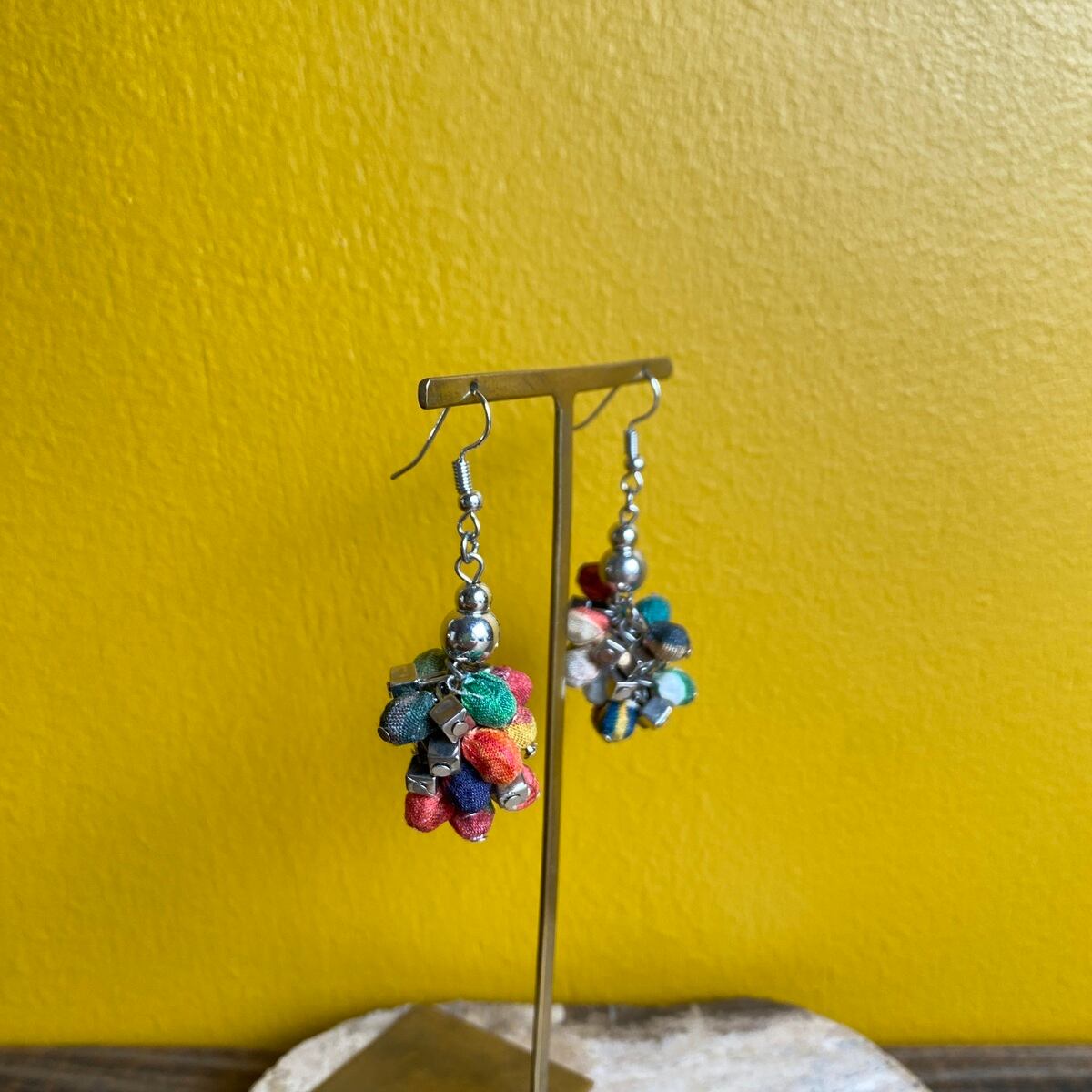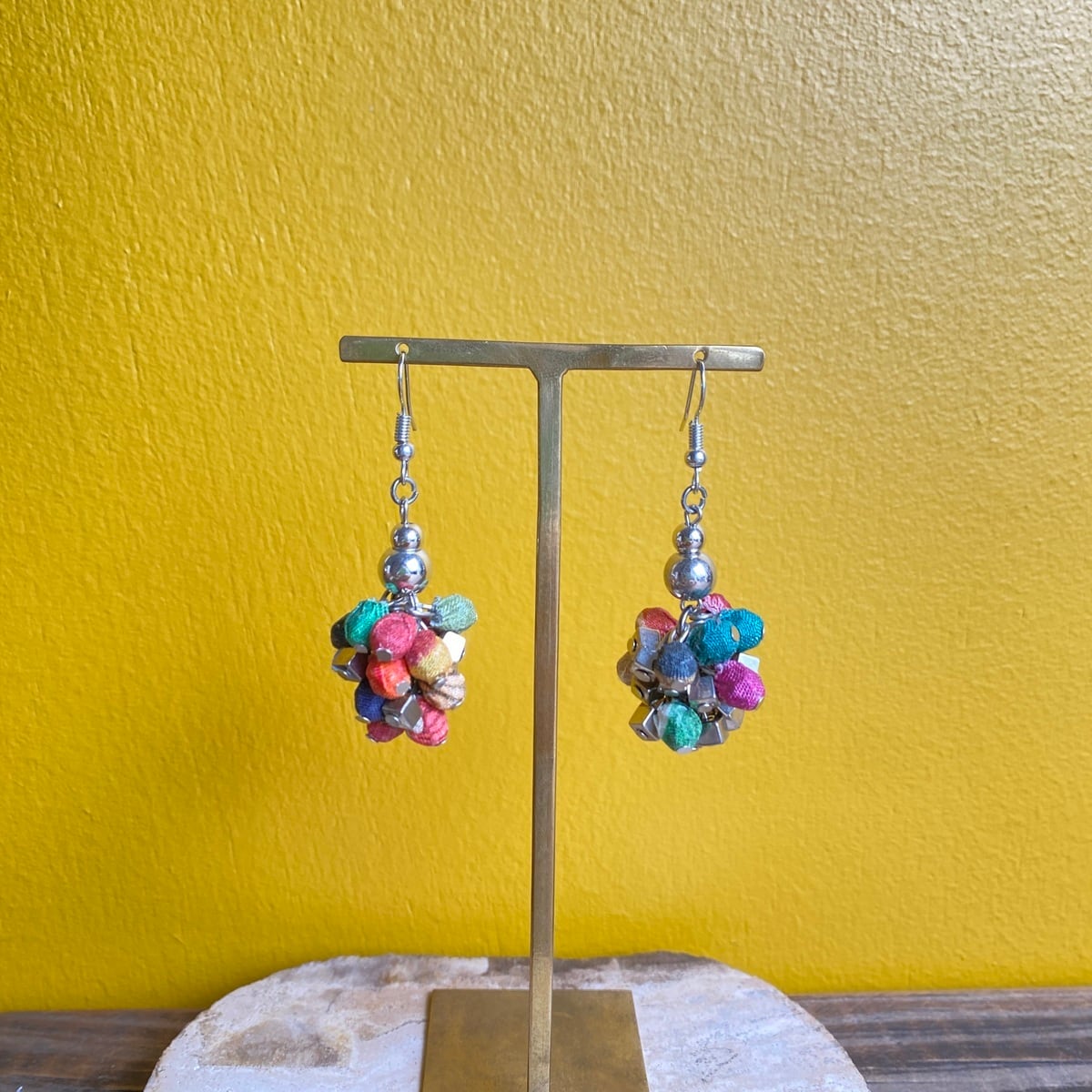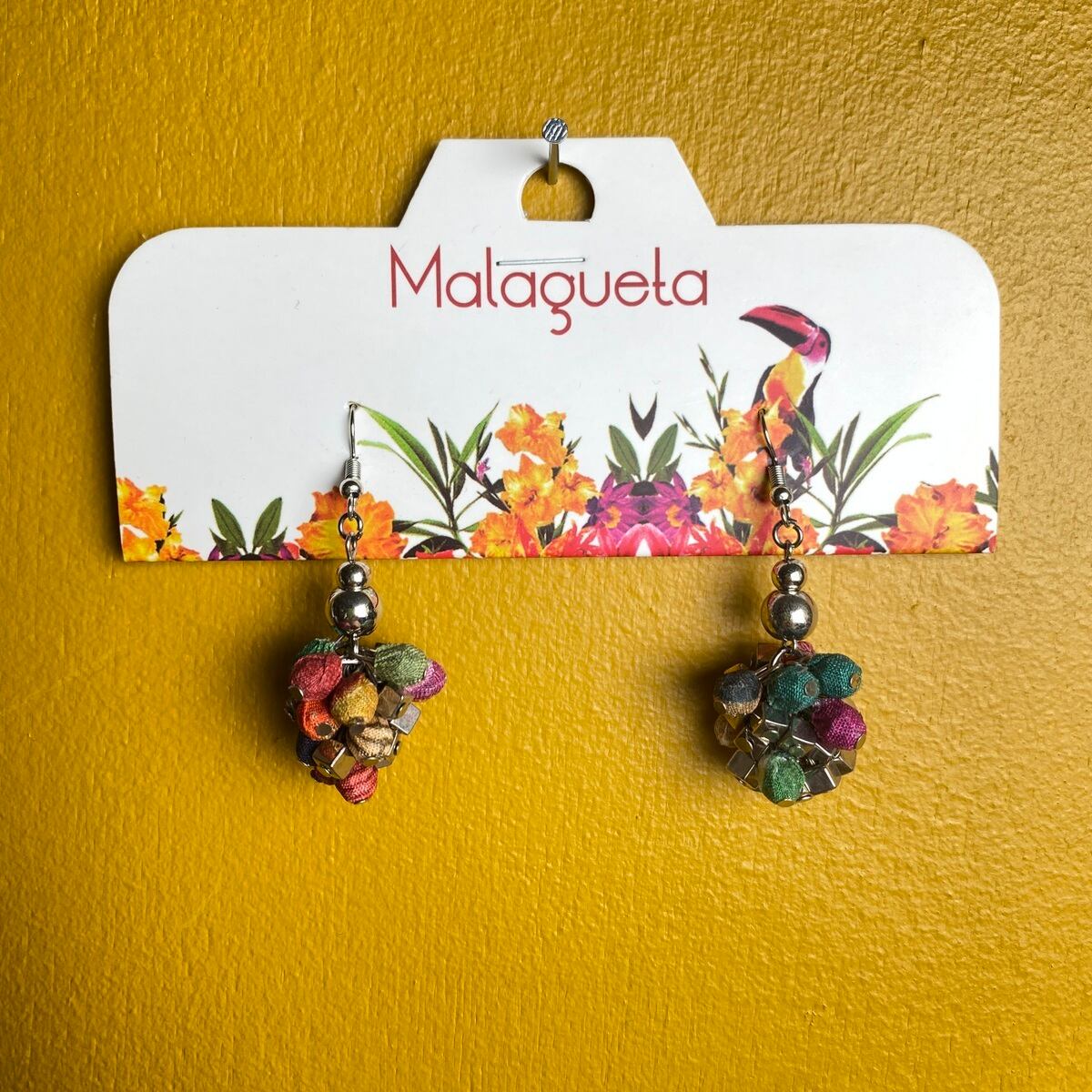 【MALAGUETA マラゲッタ】ファブリックパール フリンジ ショート ピアス