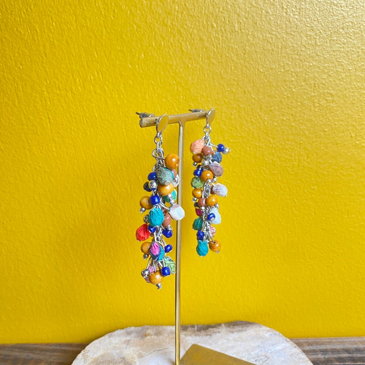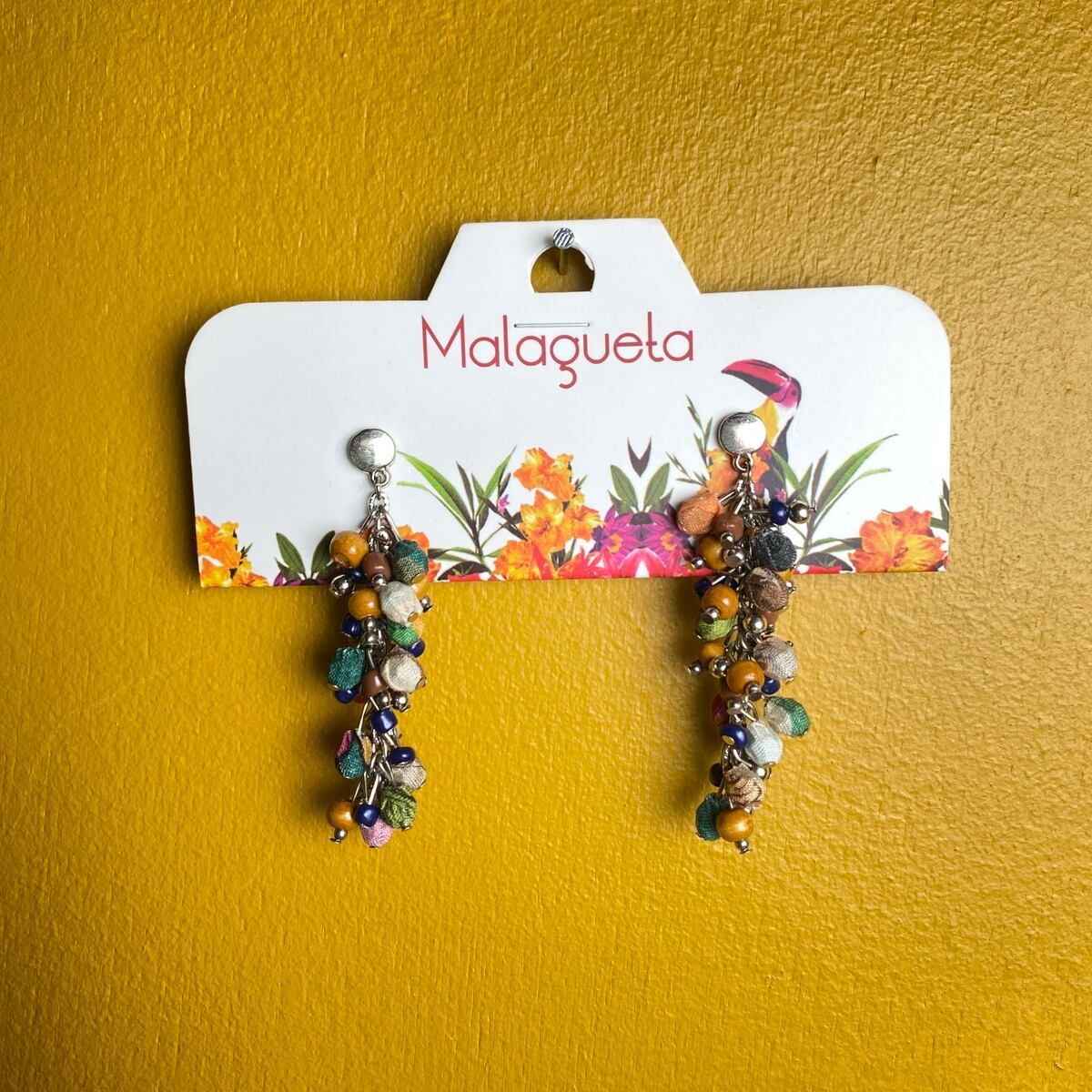 【MALAGUETA マラゲッタ】ファブリックパール フリンジ ロング ピアス