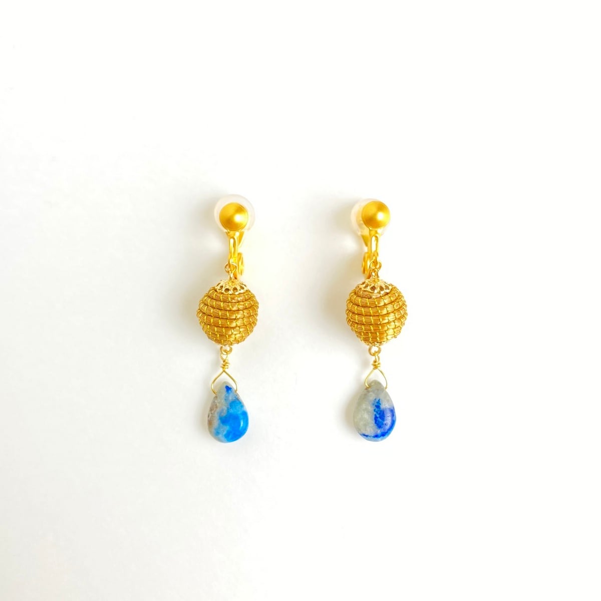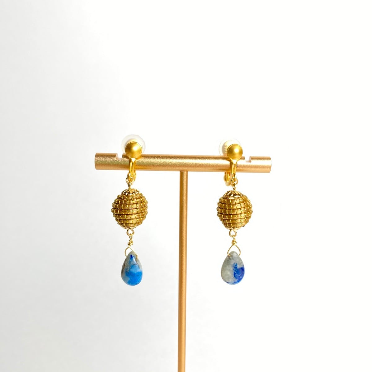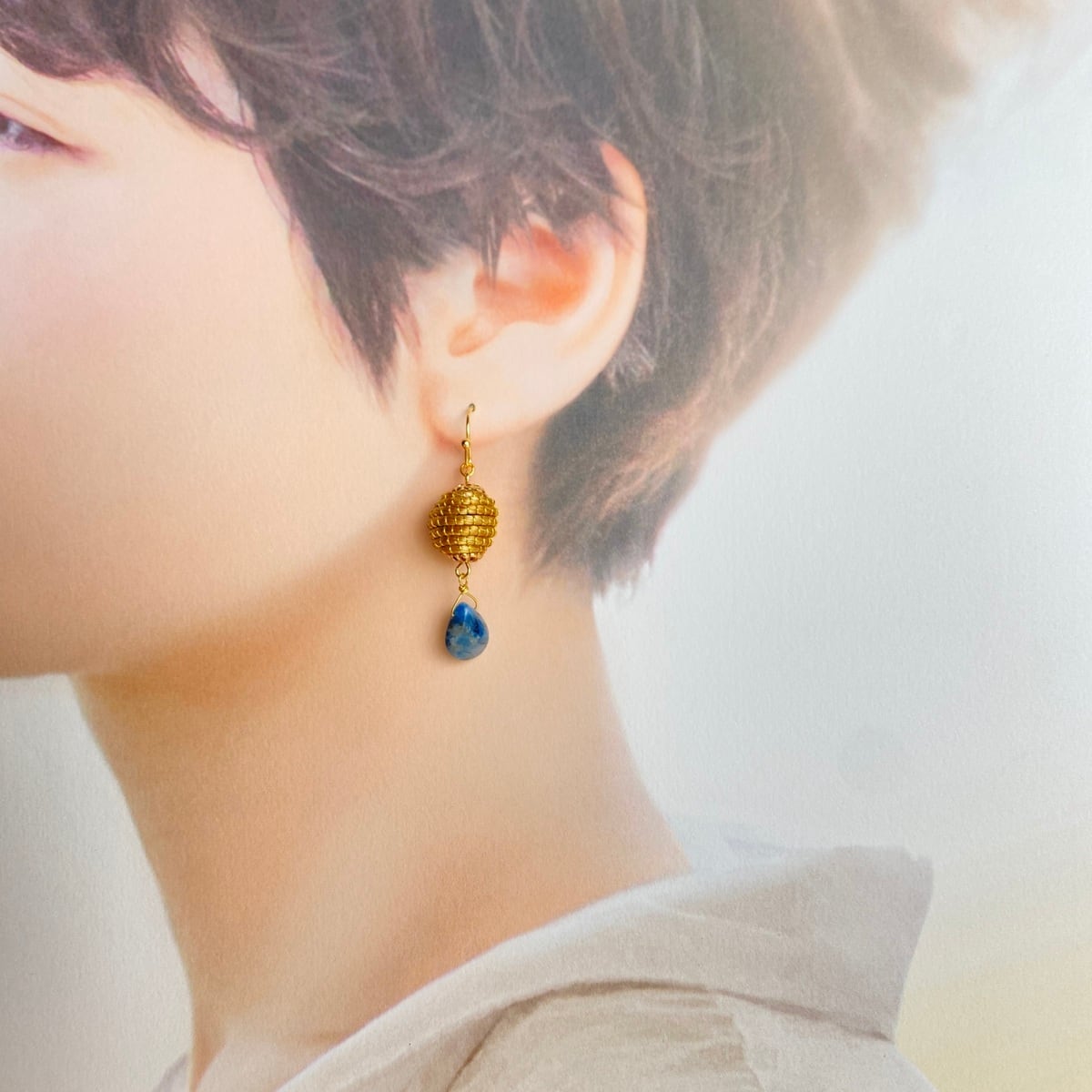 【ビオジュエリー】 黄金の草 カッピンドウラード ピアス&イヤリング スパイラルボール アフガナイト