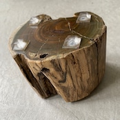パロサントの廃材を買い取り、PALOSANTO MIDORIの工房で加工した切り株オブジェです。成長した木をそのまま切り株の大きさに切り、ミドリ独自の製法で磨き上げてつるつるの表面にしています。年輪の模様を楽しめるナチュラルなオブジェは見ているだけで心を落ち着かせてくれます。