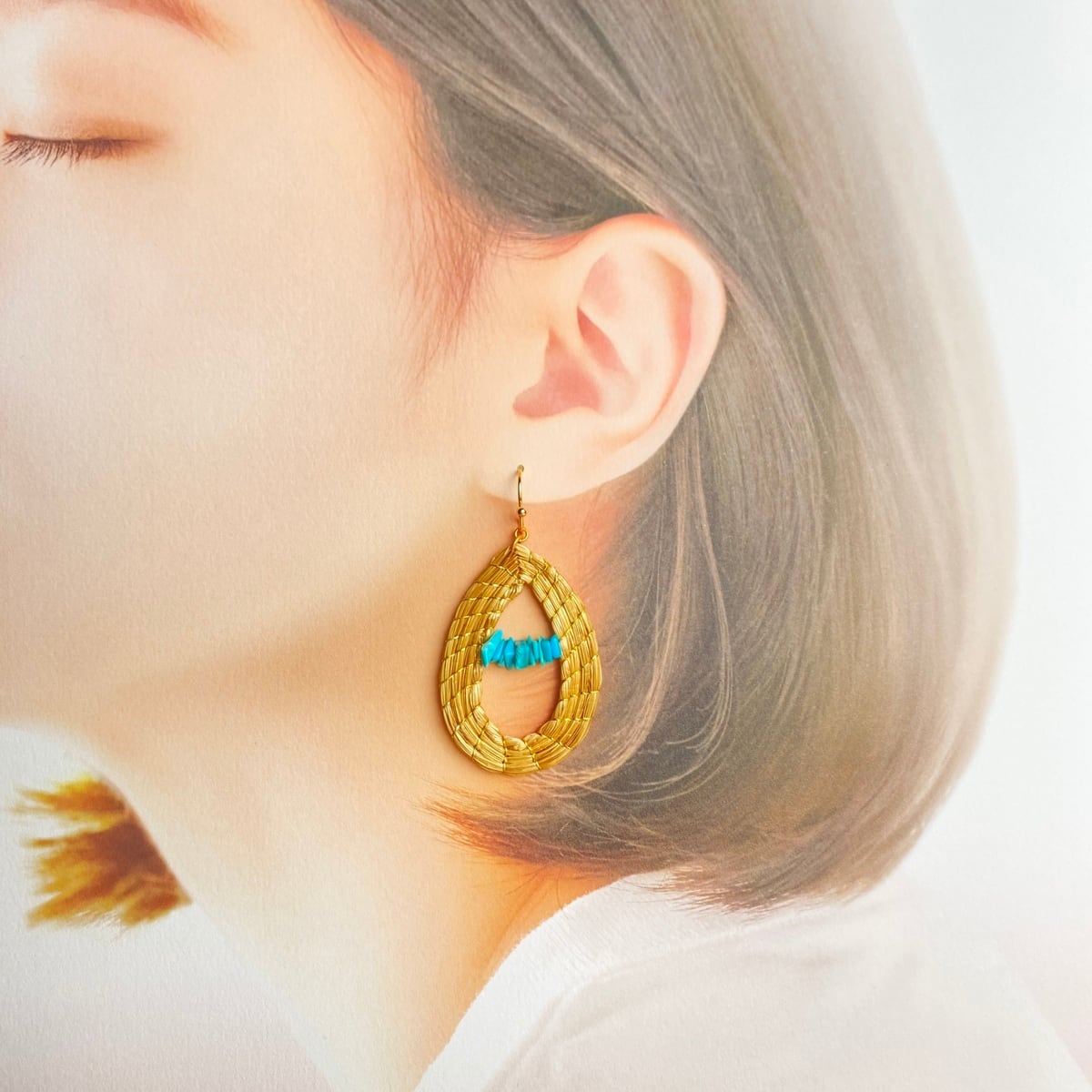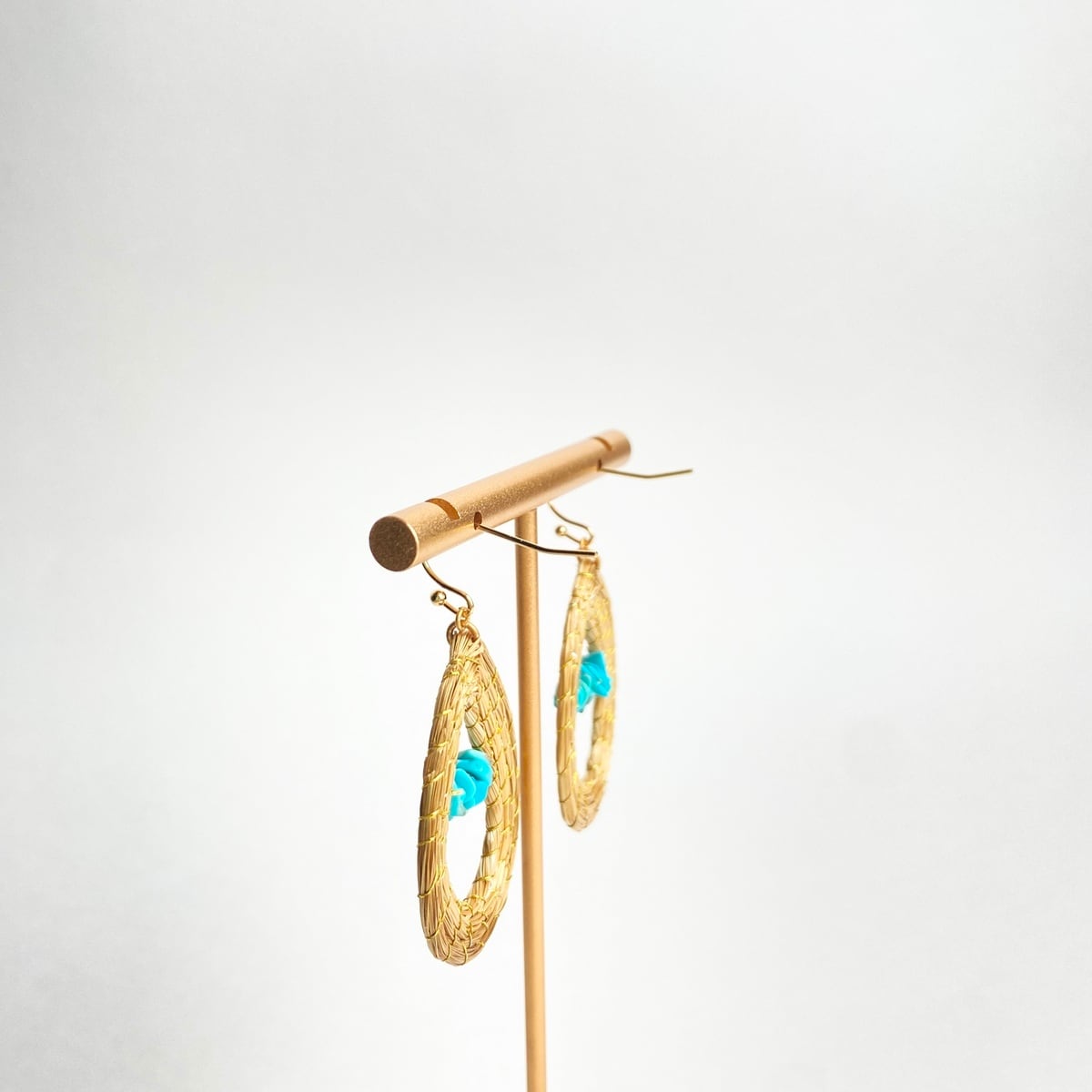 【ビオジュエリー】 黄金の草 カッピンドウラード ピアス・イヤリング ティアドロップ ターコイズSZ
