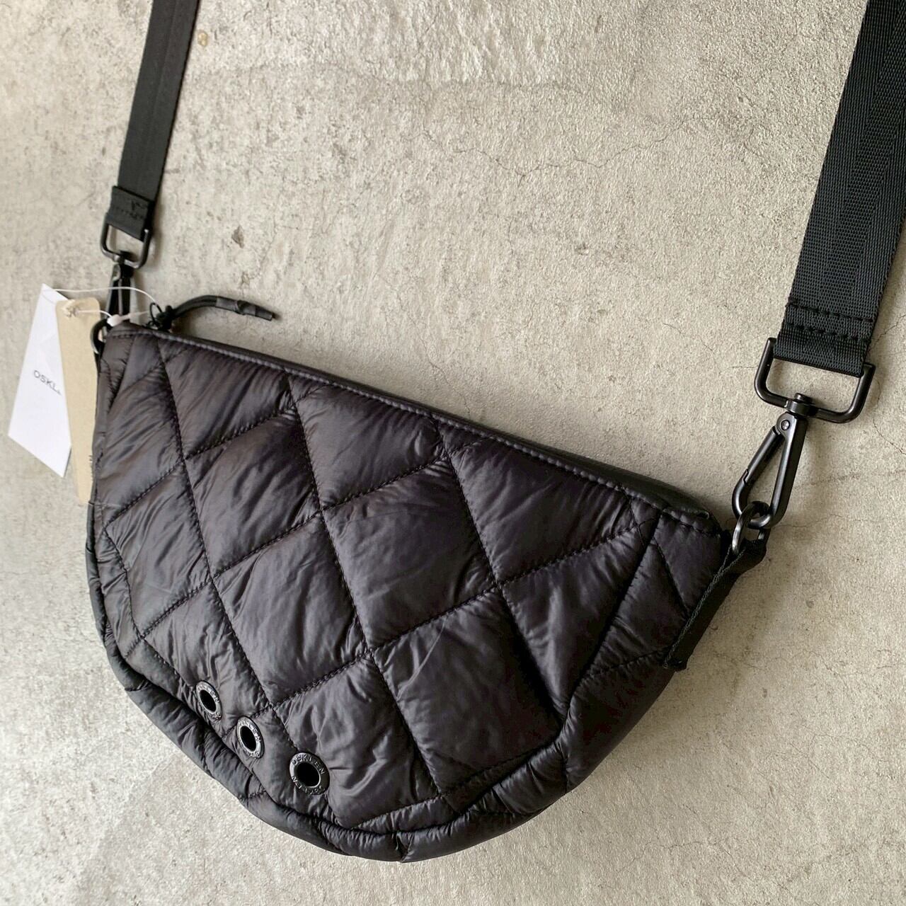 中綿入りのキルティング素材を使用し、軽量でありながら程よいボリューム感。身体に沿うカーブシルエットで、斜め掛けした際にも自然にフィットします。