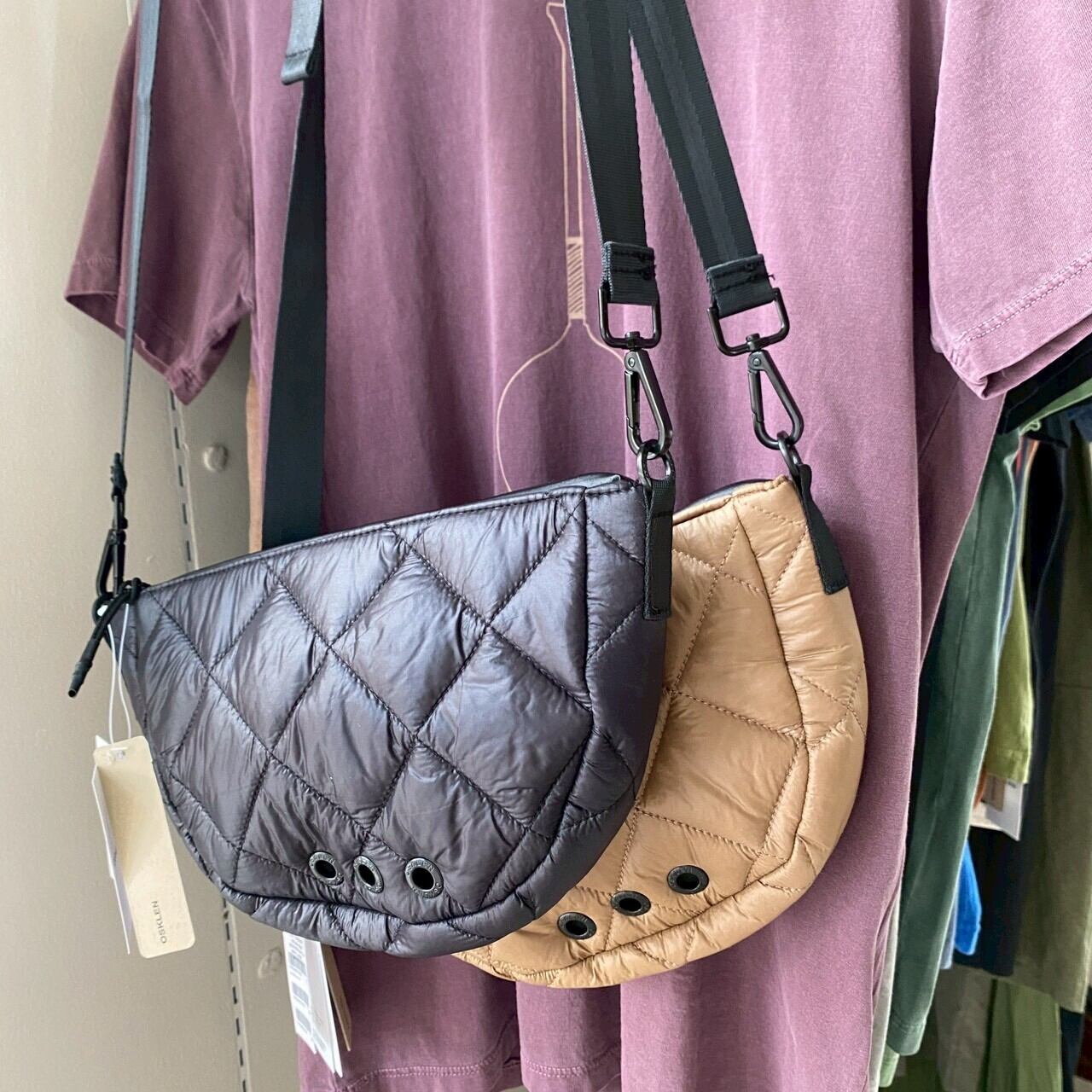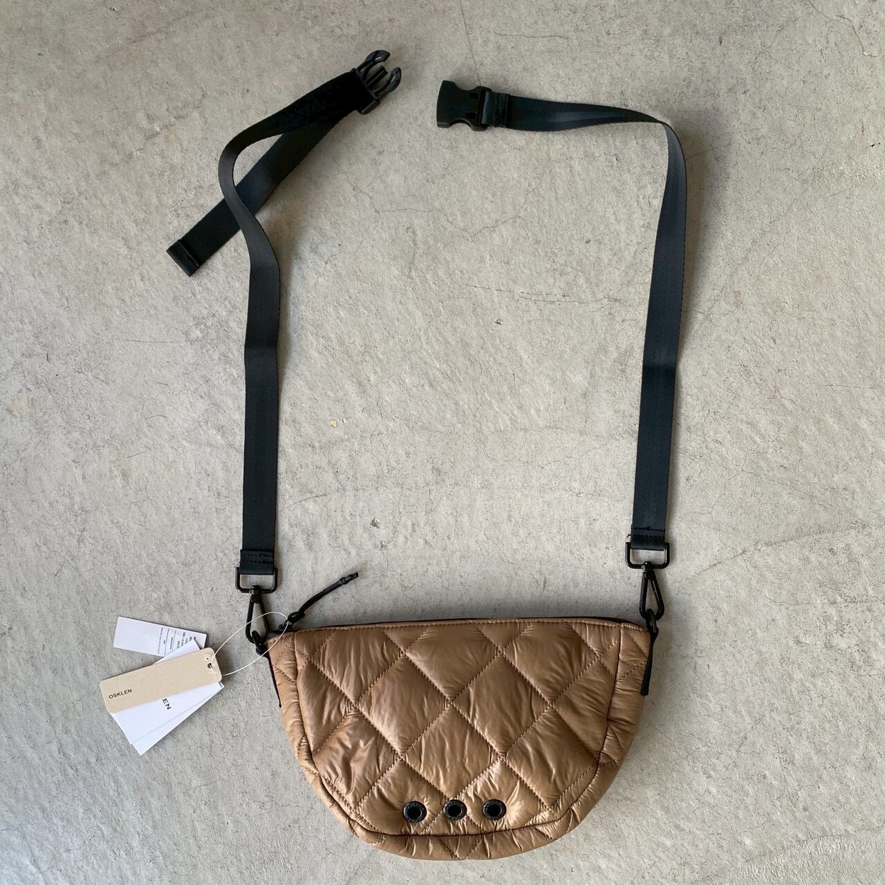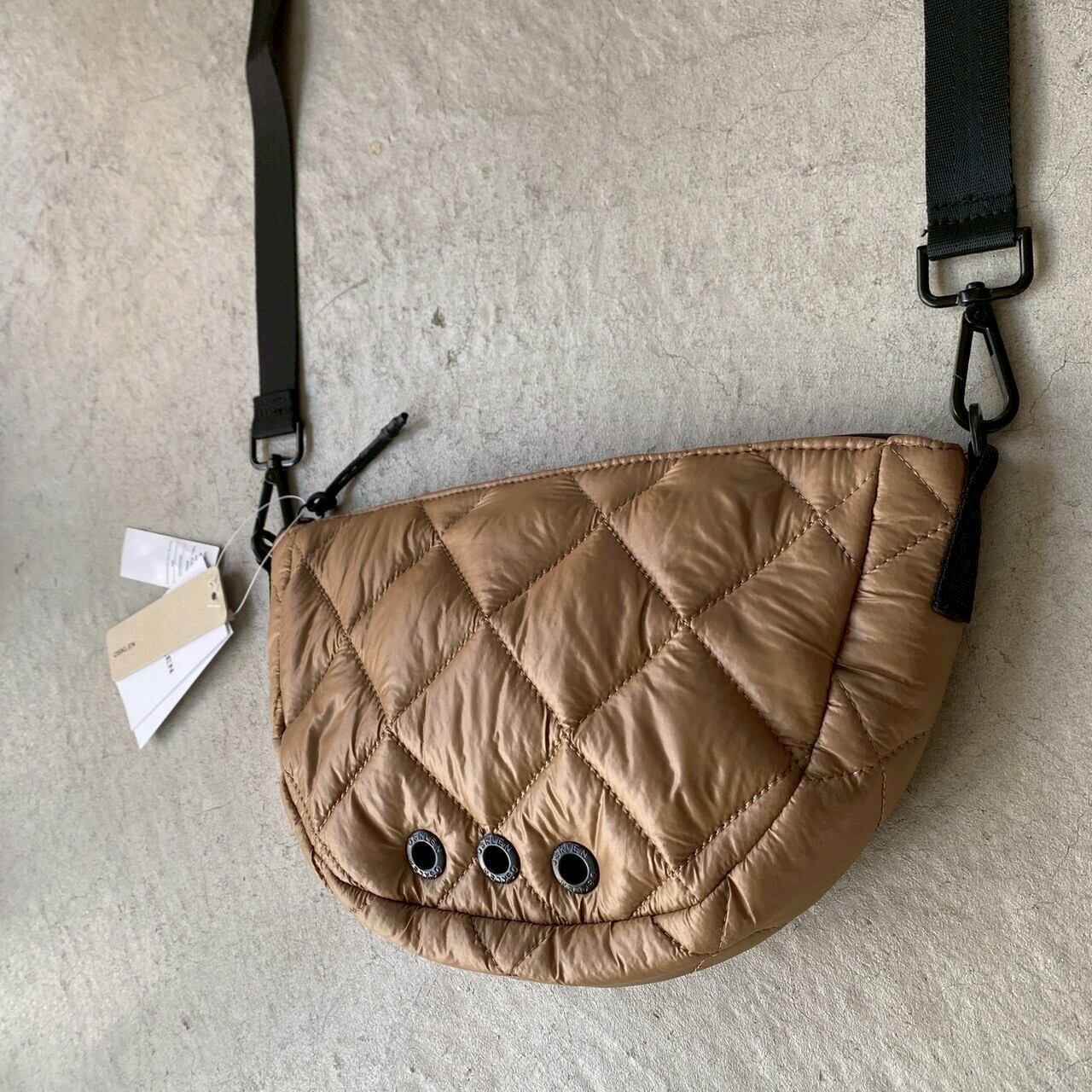 中綿入りのキルティング素材を使用し、軽量でありながら程よいボリューム感。身体に沿うカーブシルエットで、斜め掛けした際にも自然にフィットします。