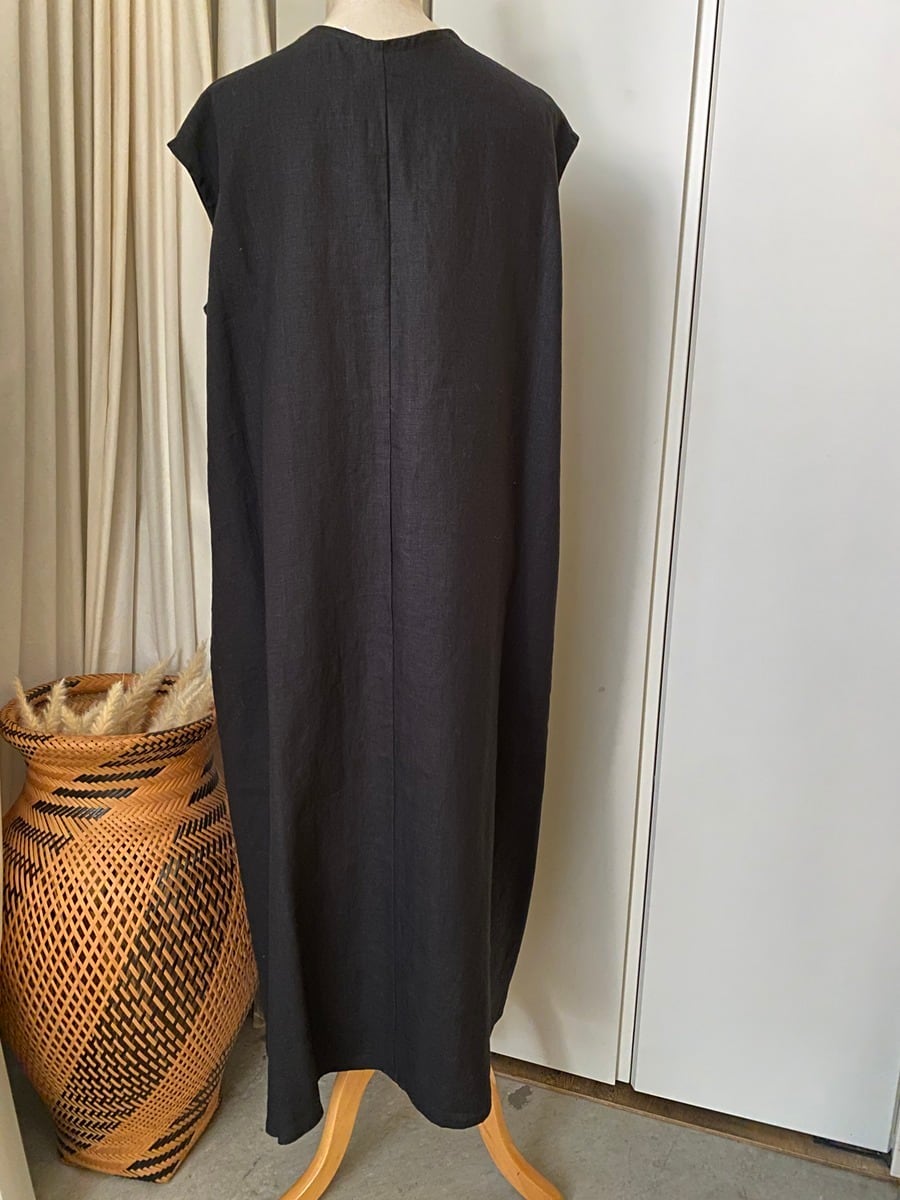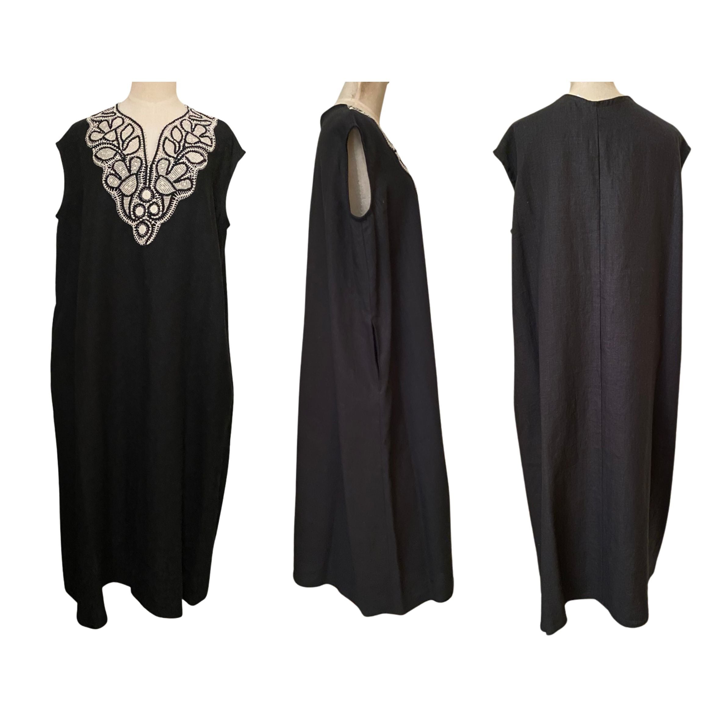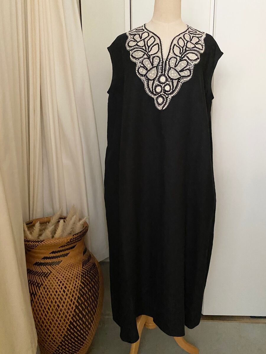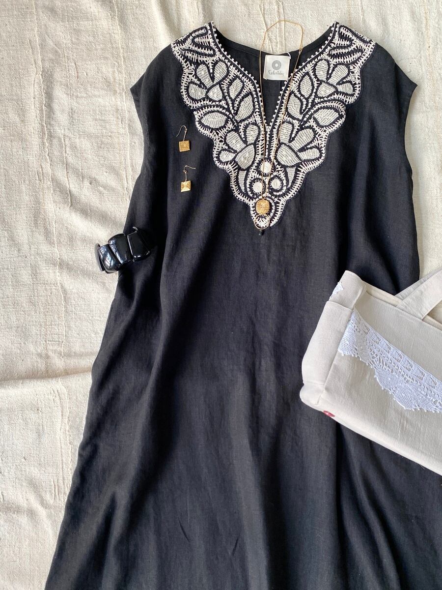 ブラジリアン 手編み ニードルレース リネン フレンチスリーブ ワンピース 黒