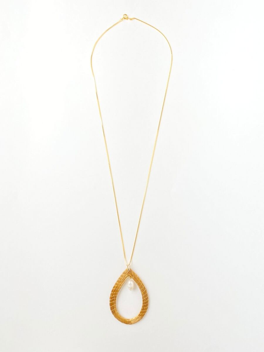 【ビオジュエリー】 黄金の草 カッピンドウラード チェーンネックレス ティアドロップ L 淡水パール