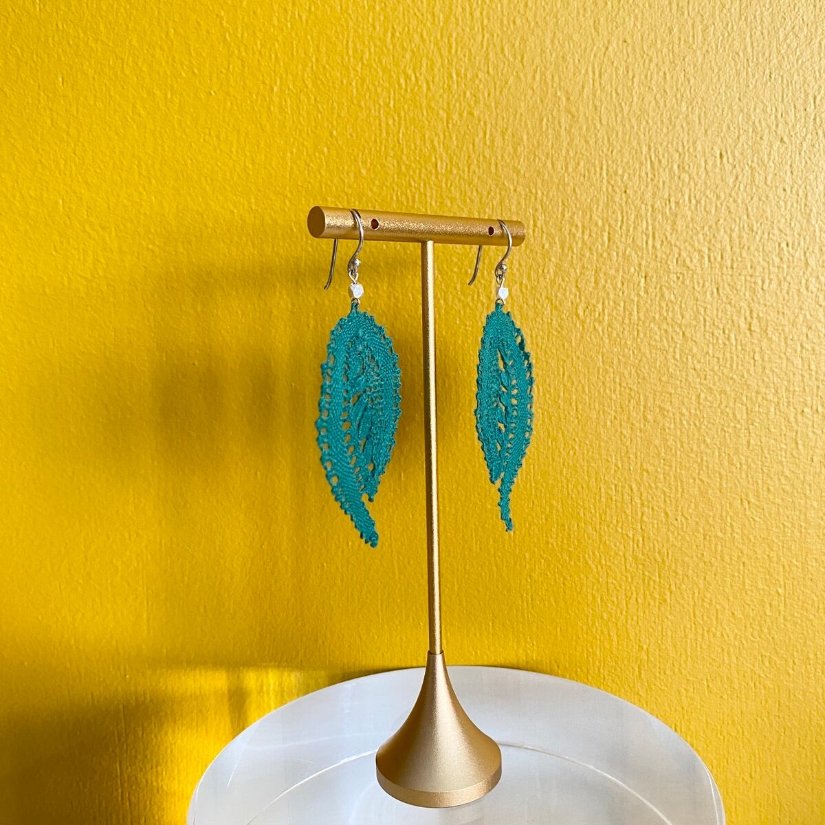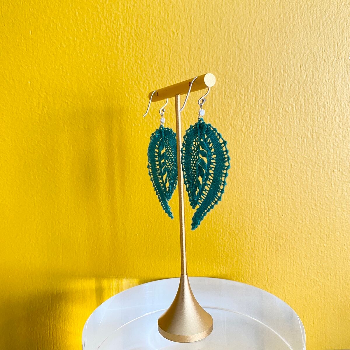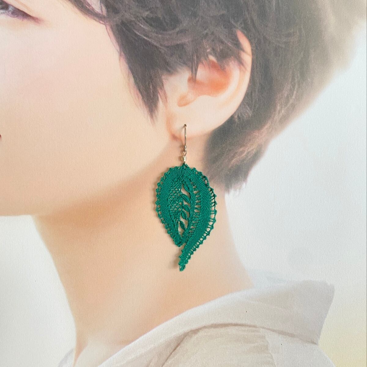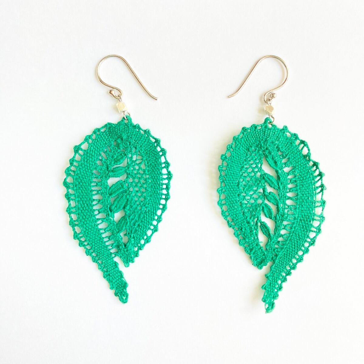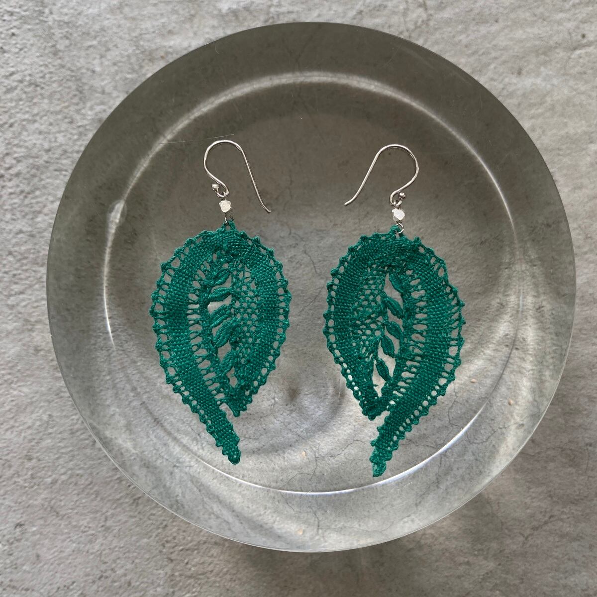 【手編みレースアクセサリー】ピアス& イヤリング ボビンレース ボタニカル グリーン