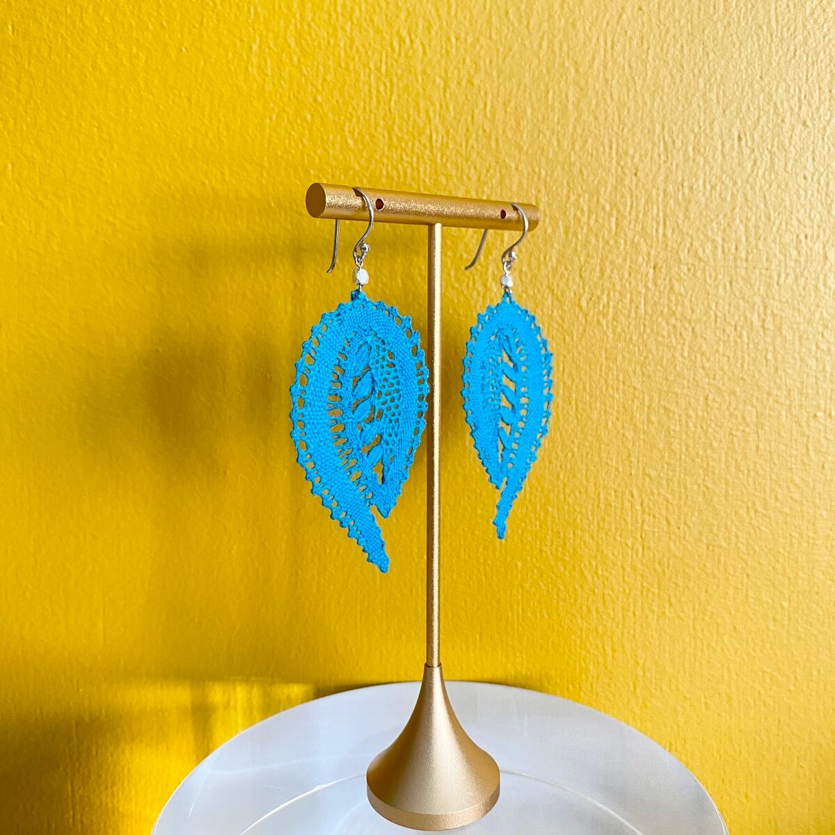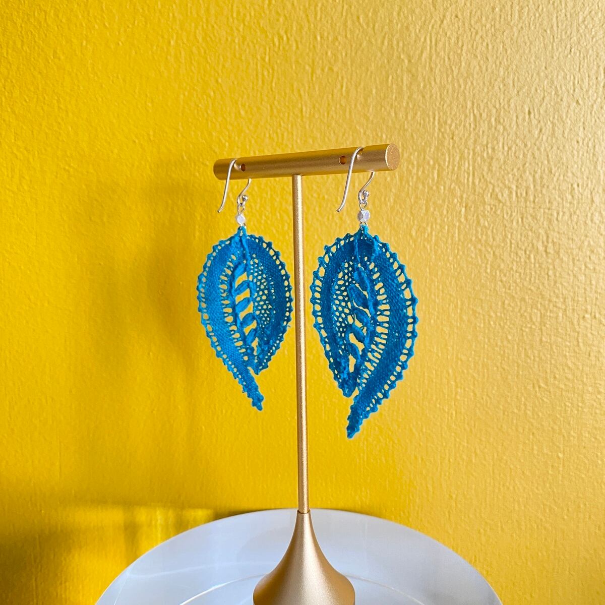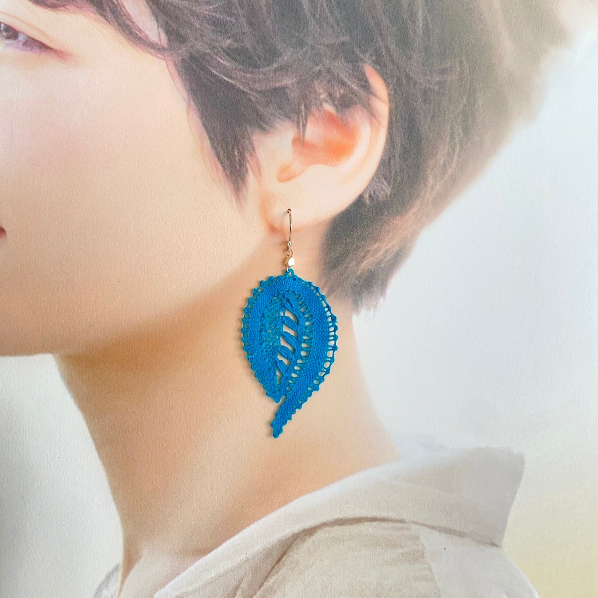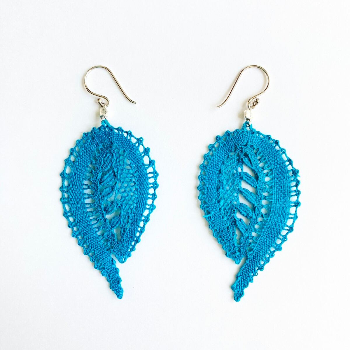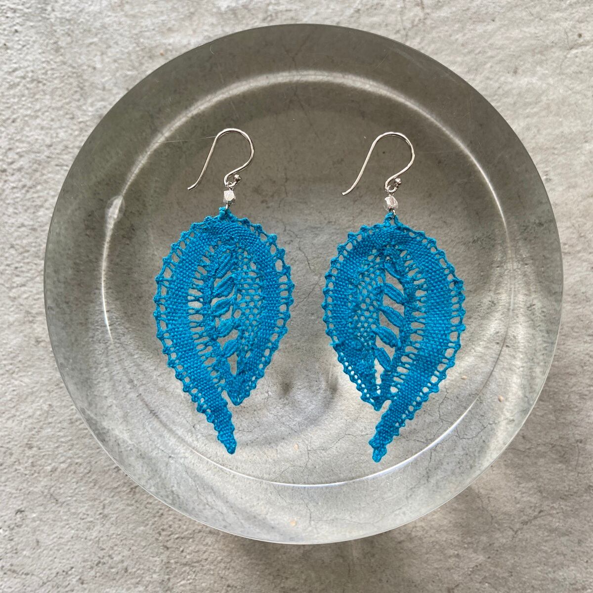 【手編みレースアクセサリー】ピアス& イヤリング ボビンレース ボタニカル ターコイズ