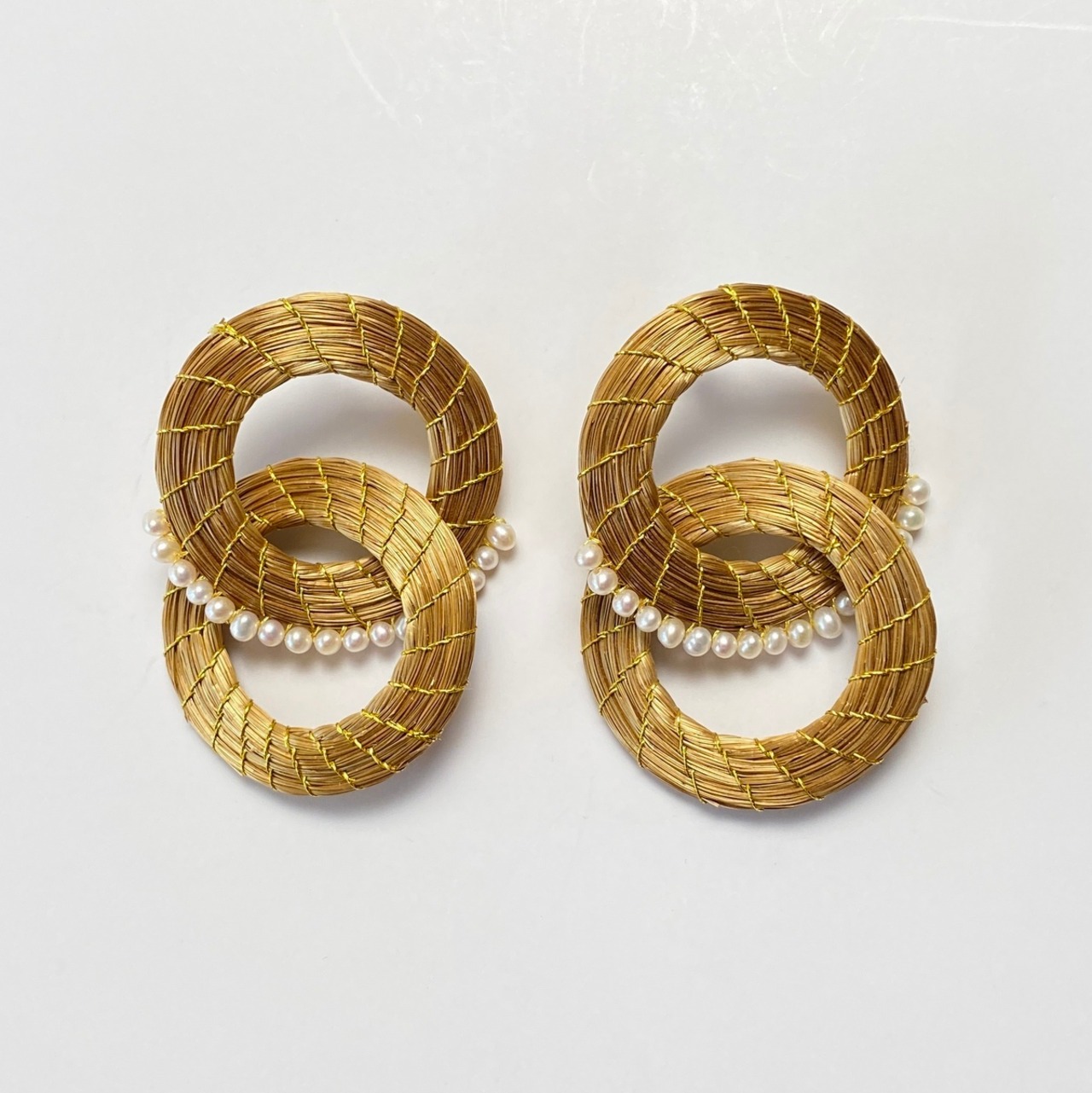 【ビオジュエリー】 黄金の草 カッピンドウラード BIO DRESS ピアス ダブルフープ 淡水パール