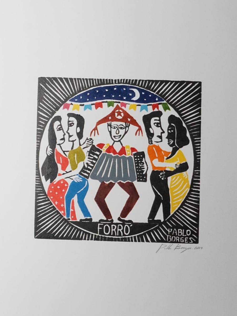 2000年生まれ。J. Borgesの末っ子。父J. Borgesの後継者のひとりとして、兄のPabloと共に、僅か18才にしてブラジル各地を周り、講演や版画指導にあたる日々を送る。「木版画は自分が家族からもらった身体の一部、木版画に人生を捧げたい。」 と語る。