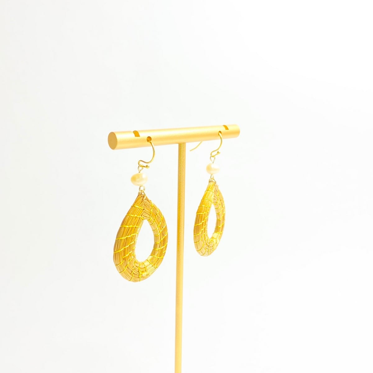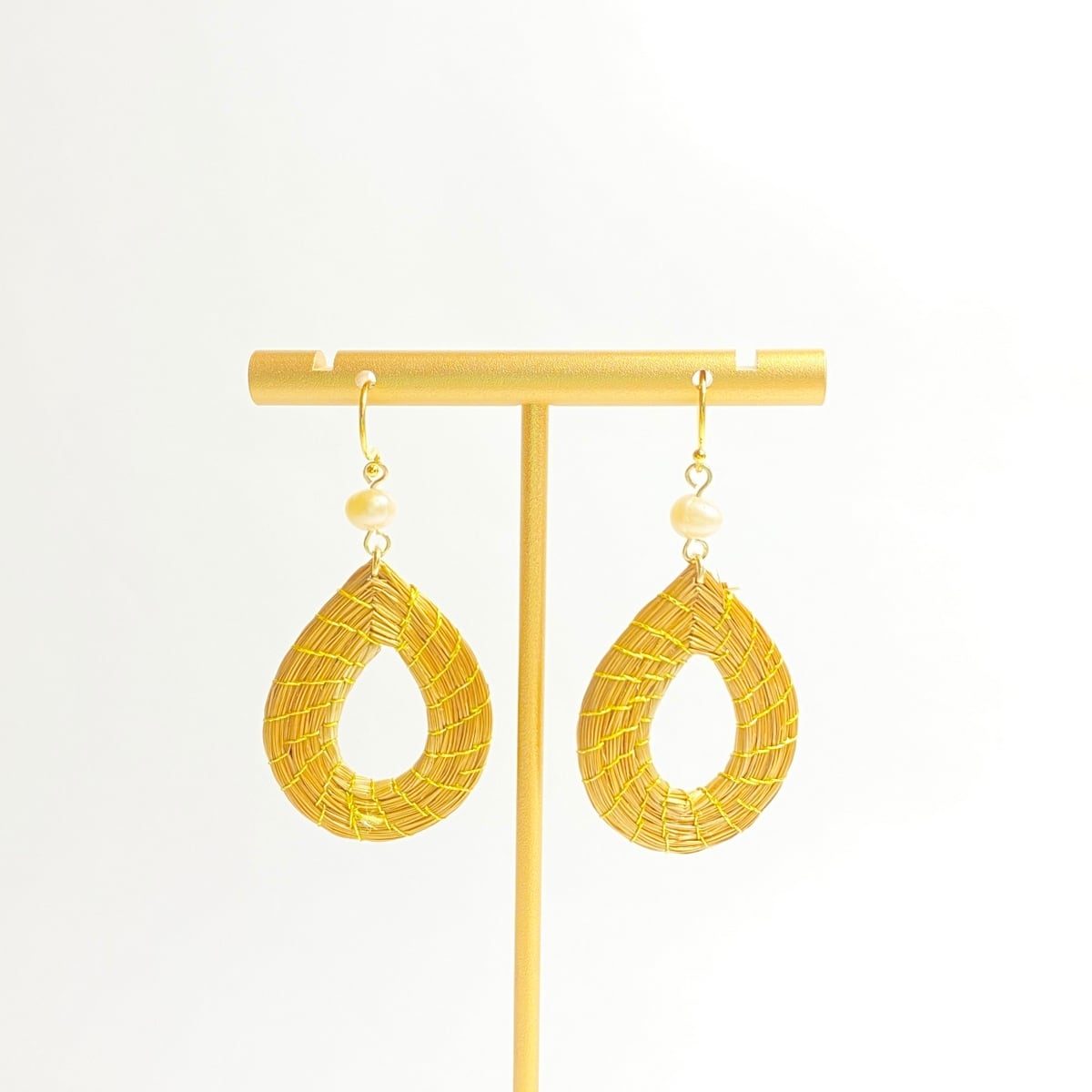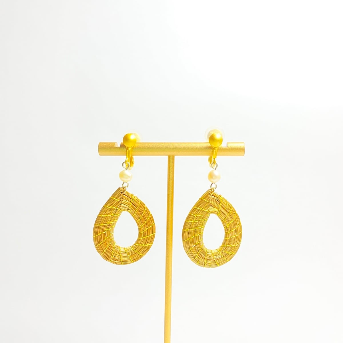 【ビオジュエリー】 黄金の草 カッピンドウラード ピアス・イヤリング ティアドロップ淡水パール S