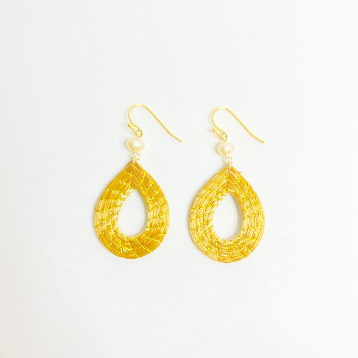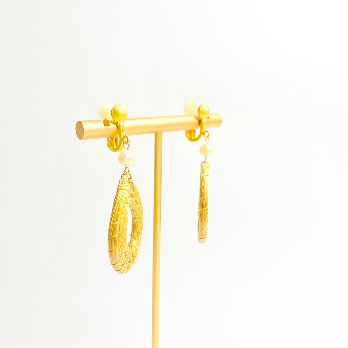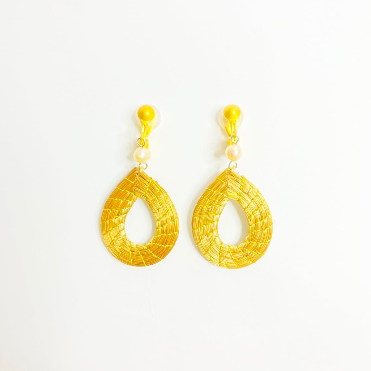 【ビオジュエリー】 黄金の草 カッピンドウラード ピアス・イヤリング ティアドロップ淡水パール S