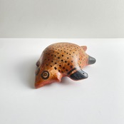 ブラジル シングー川流域の先住民族族、ワウラー族、カマユラ族やメイナク族の野生動物を題材とした陶芸作品。