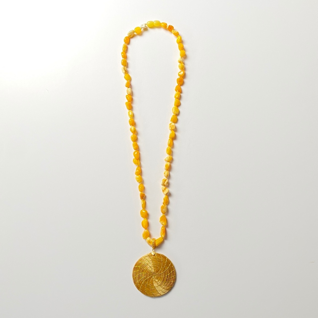 【ビオジュエリー】 黄金の草 カッピンドウラード ラウンド ミルキー琥珀ネックレス