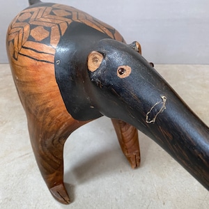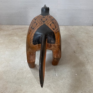 2018年に東京都庭園美術館で開催された、「ブラジル先住民族の椅子 野生動物と想像力」で初めて日本で紹介された、南米大陸、ブラジル北部のアマゾン河やシングー川流域で暮らす先住民族、Kamayura族のアリクイをモチーフとした椅子。カマユラを代表する作家、ヤワピさん作。