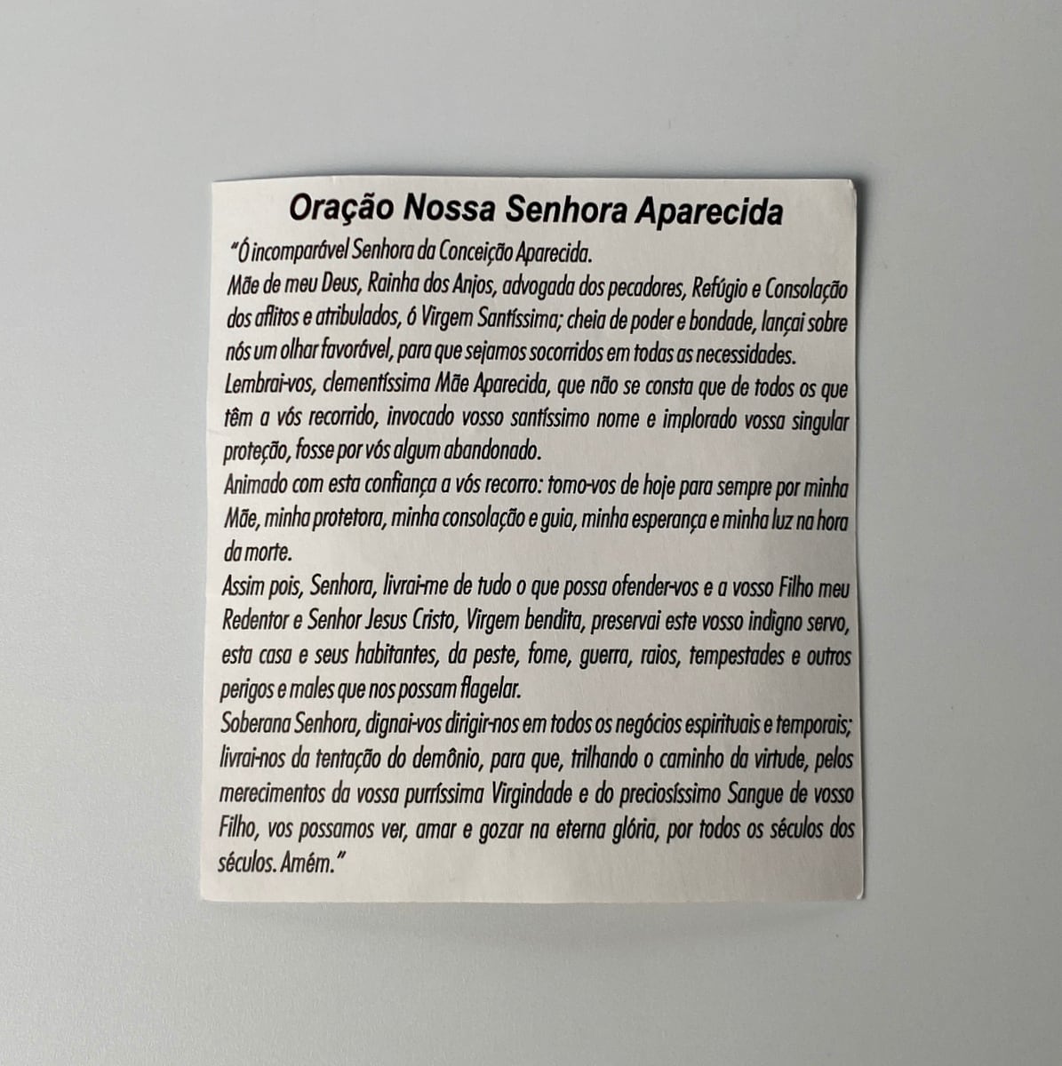 また、パッケージにはアパレシーダの聖母へのお祈りがポルトガル語で書かれています。