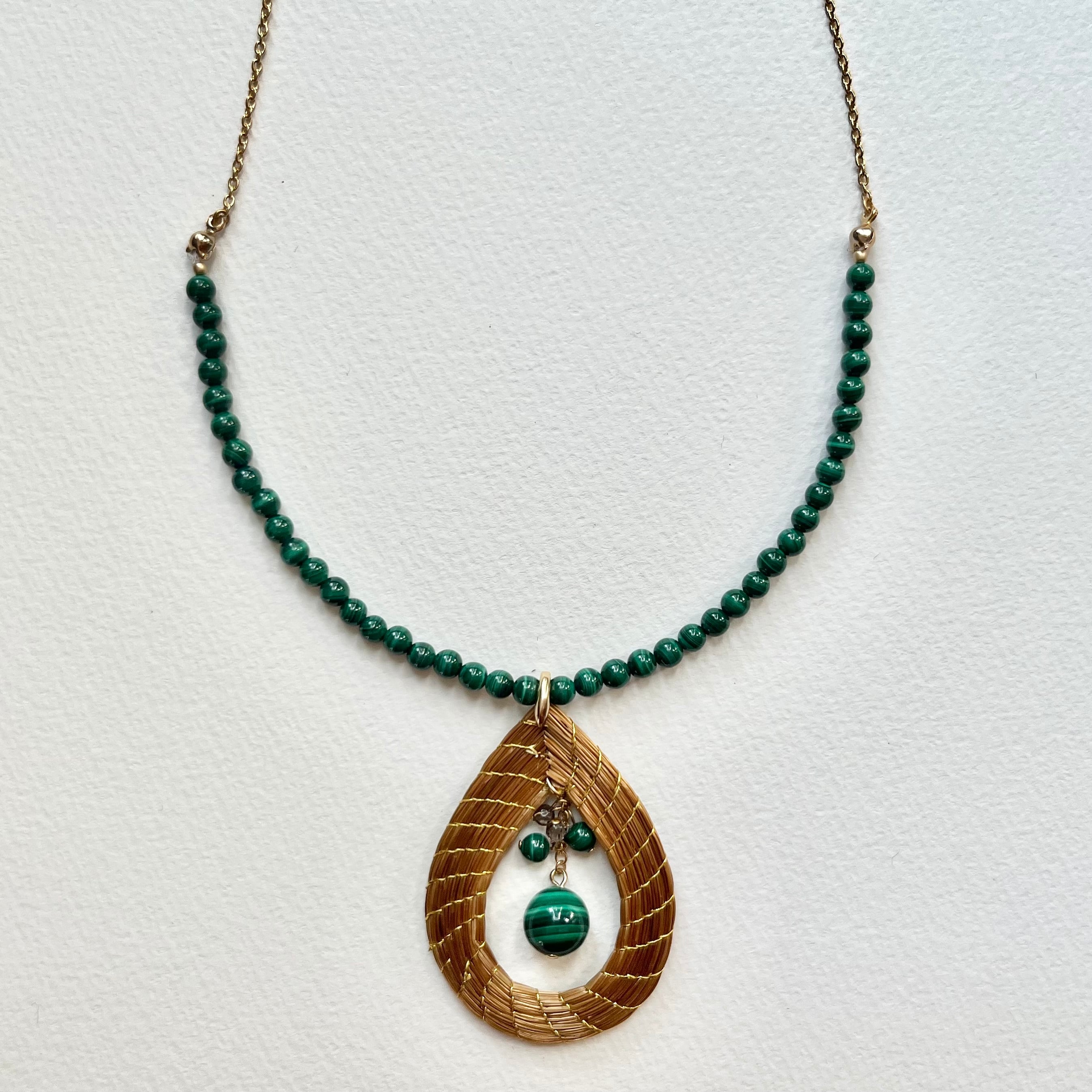 【ビオジュエリー】 黄金の草 カッピンドウラード チェーンネックレス ティアドロップ M マラカイト