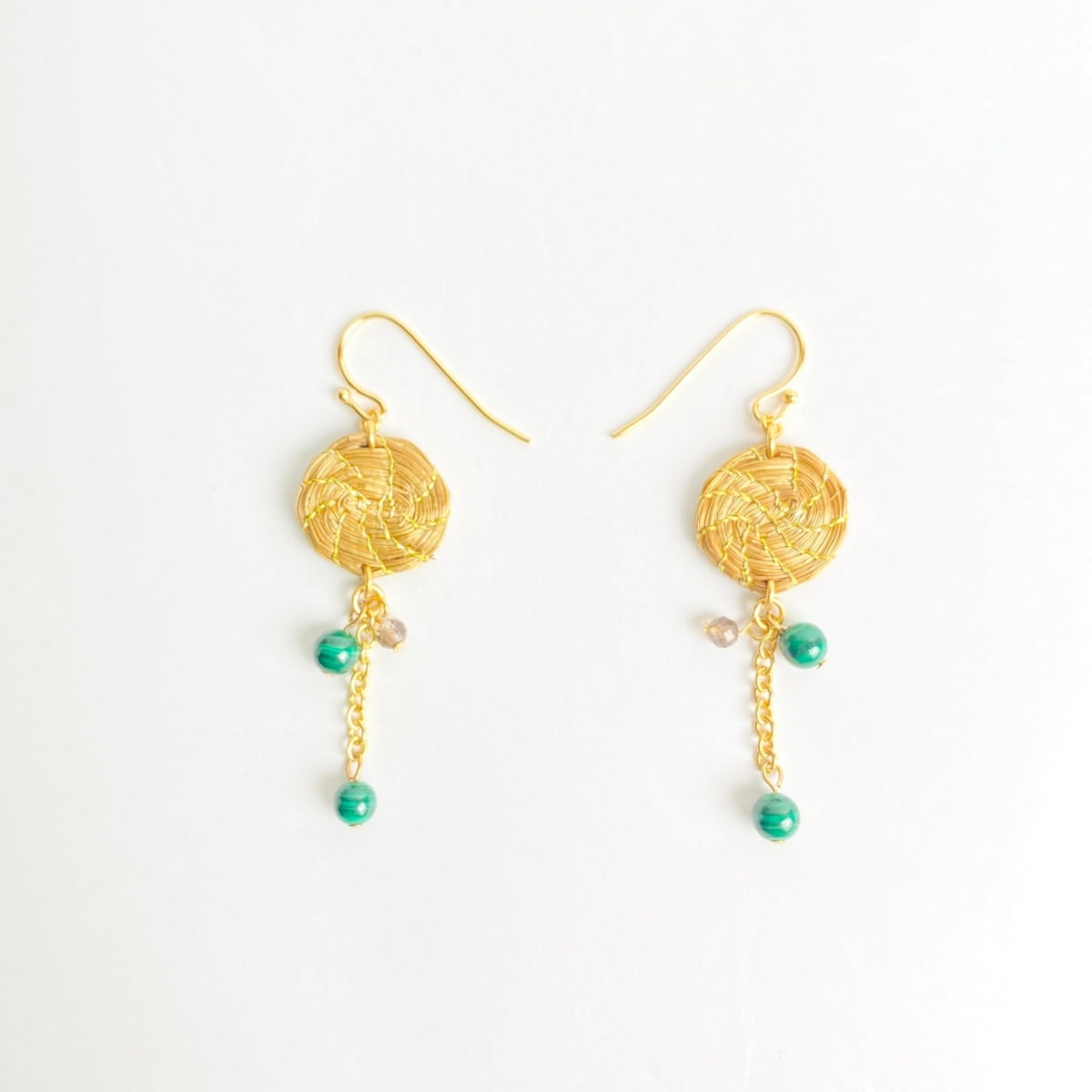 【ビオジュエリー】 黄金の草 カッピンドウラード ピアス イヤリング ラウンド マラカイト