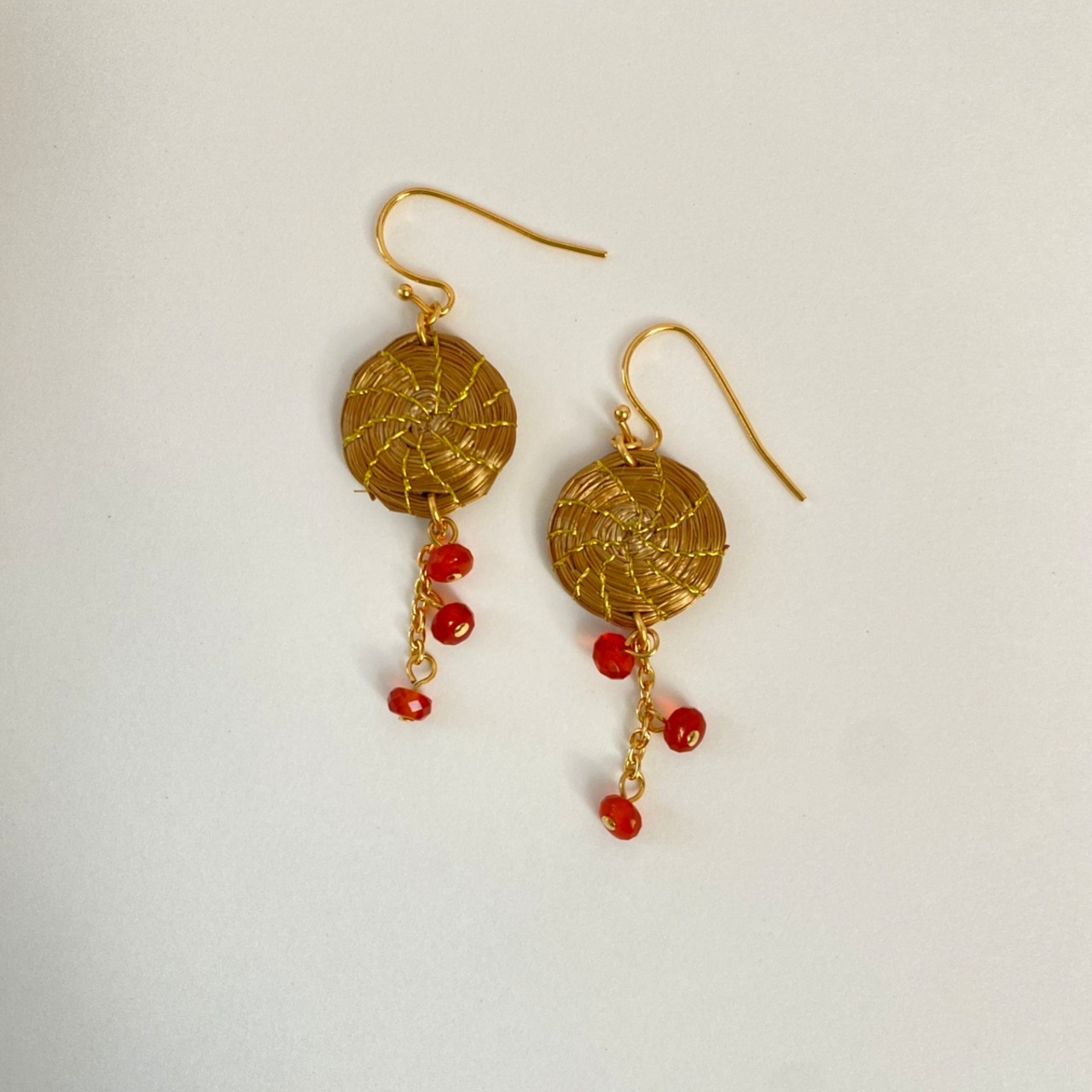 【ビオジュエリー】 黄金の草 カッピンドウラード ピアス イヤリング ラウンド カーネリアン